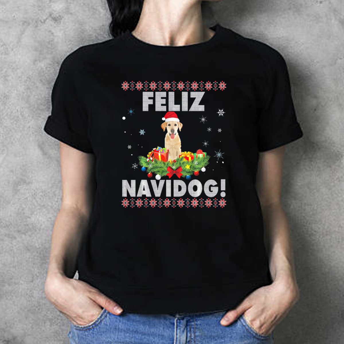 Celebrate the holiday season with our Feliz Navidog Labrador Retriever T-Shirt, perfect for dog lovers and festive spirits alike! This cheerful design features a lovable Labrador wearing a Santa hat, surrounded by Christmas wreaths and snowflakes, making it an ideal choice for casual wear, themed events, or daily festivities. Crafted for comfort and style, this shirt is not just a fashion statement; it’s a celebration of the joy our furry friends bring during the holidays. Made in the USA, this fan-made design is sure to spread smiles wherever you go!