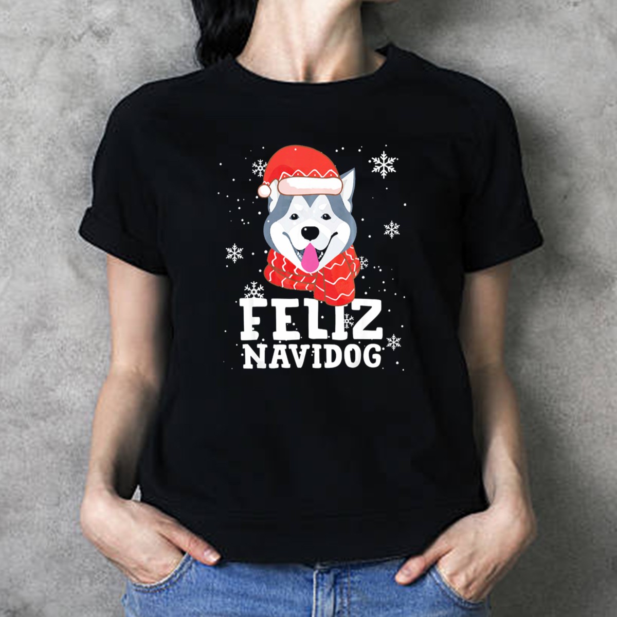 Celebrate the holiday season with our Feliz Navidog Siberian Husky Christmas T-shirt, perfect for dog lovers and festive gatherings! This charming design features an adorable husky donning a Santa hat and scarf, making it an ideal choice for casual wear, themed events, or simply spreading holiday cheer. Crafted for comfort and style, this shirt is a must-have for anyone looking to showcase their love for furry friends during the most wonderful time of the year!