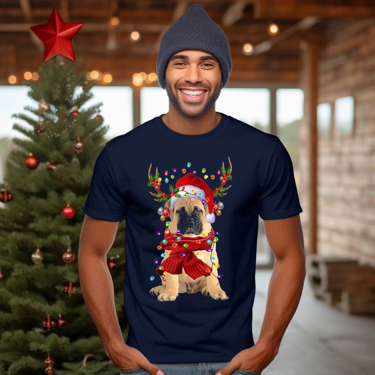 Celebrate the holiday season with our Festive Bull Mastiff Reindeer Lights Christmas Dog T-Shirt! Perfect for dog lovers and festive spirits, this shirt showcases a unique and playful design that combines the charm of your favorite breed with the joy of Christmas lights. Ideal for casual wear, themed events, or daily outings, this tee is a must-have addition to your holiday wardrobe, bringing cheer and warmth wherever you go.