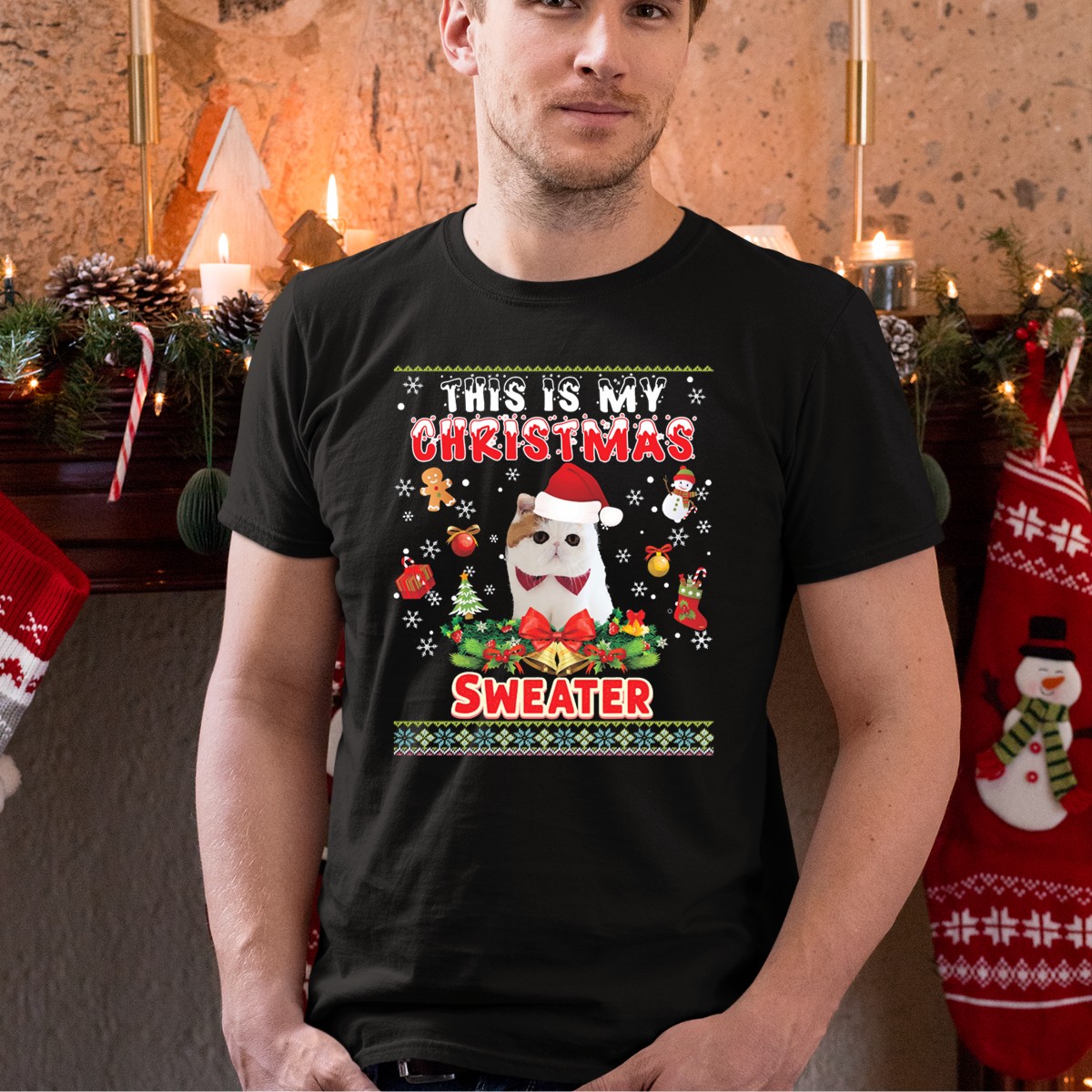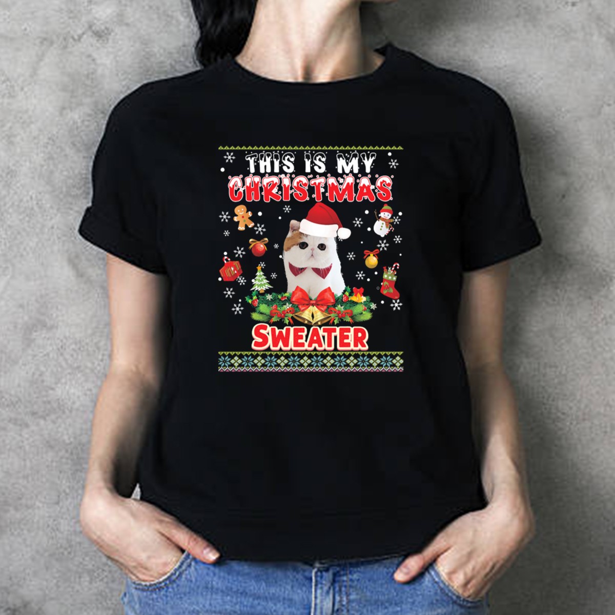 Celebrate the holiday spirit in style with our Festive Cat This Is My Christmas Sweater T-Shirt! This playful and eye-catching design features a charming cat wearing a Santa hat, adorned with festive decorations that are sure to bring smiles to all around you. Perfect for cat lovers and anyone looking to spread joy at casual wear events, themed parties, or simply during your daily holiday festivities. Made for comfort and fun, this shirt is a must-have for the season!