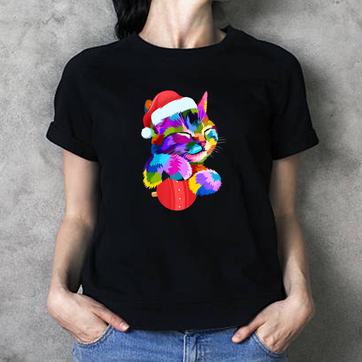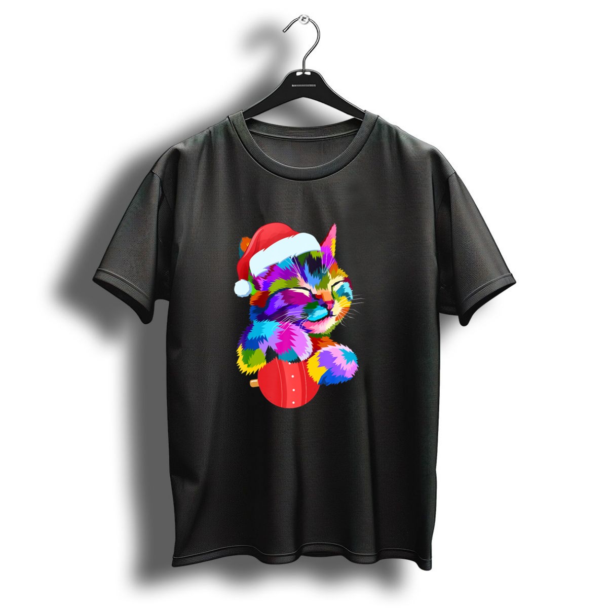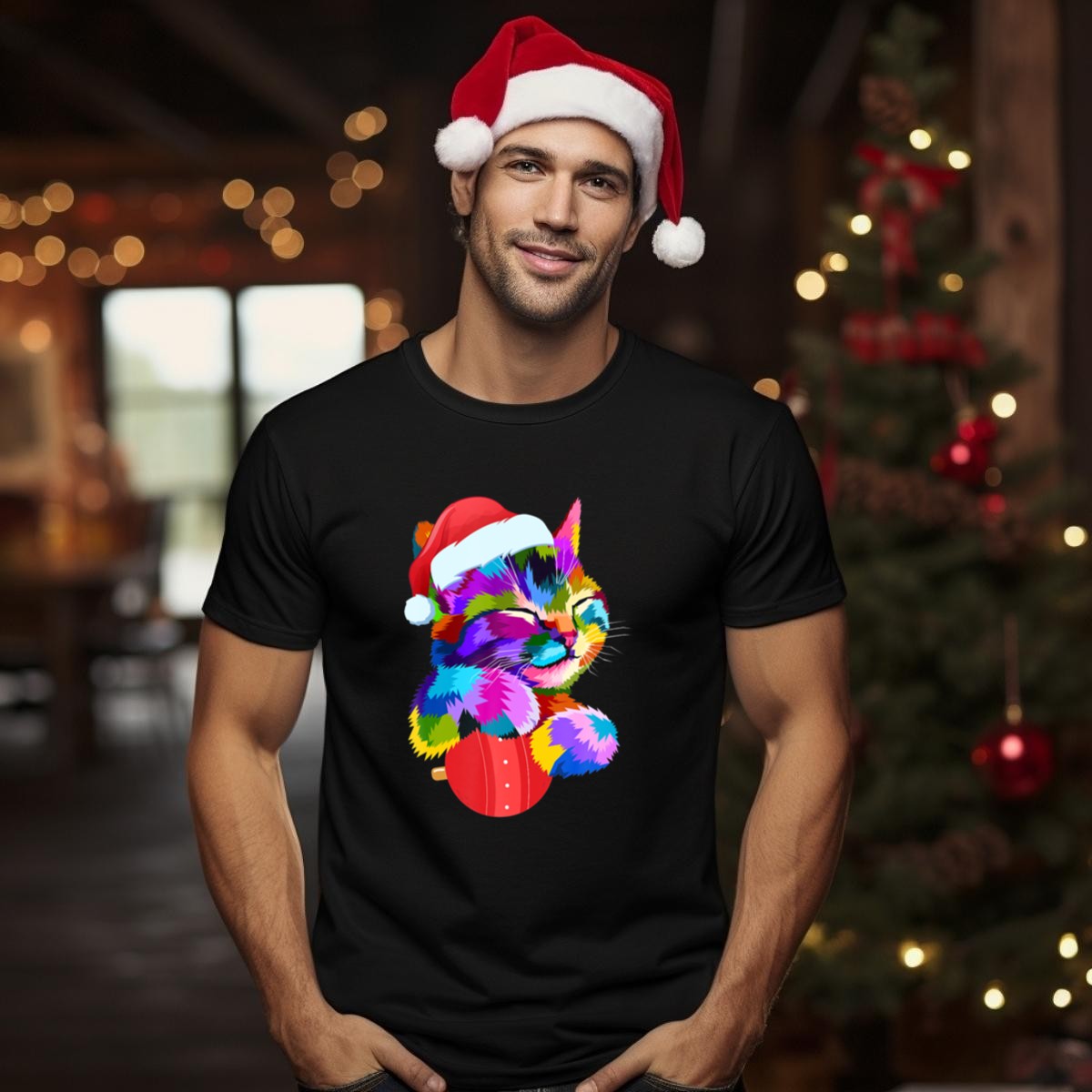 Celebrate the joy of the holiday season with our Festive Colorful Cat With Santa Hat Hugging Christmas Ornament T-Shirt! This charming design is perfect for cat lovers and festive spirits alike, making it an ideal choice for casual gatherings, themed events, or simply bringing a sprinkle of cheer to your daily wear. Made with love in the USA, this fan-made graphic tee combines comfort and style, ensuring you stand out in any festive crowd.