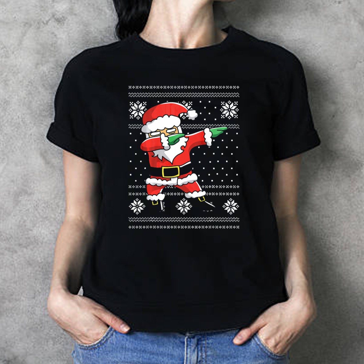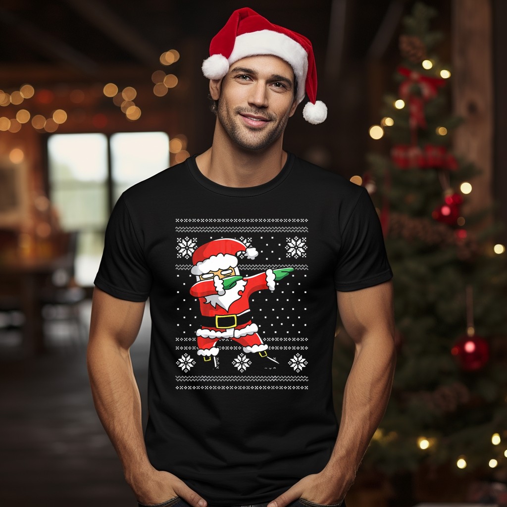 Get into the holiday spirit with our Festive Dabbing Santa Ugly Christmas T-Shirt! Perfect for anyone looking to spread some cheer at casual gatherings, themed events, or simply enjoying daily wear during the festive season. This fan-made design, proudly printed in the USA, showcases a fun and playful take on Santa that is sure to turn heads and spark conversations. Made for those who love to celebrate in style, this shirt combines comfort with a lighthearted vibe, making it a must-have for your holiday wardrobe.