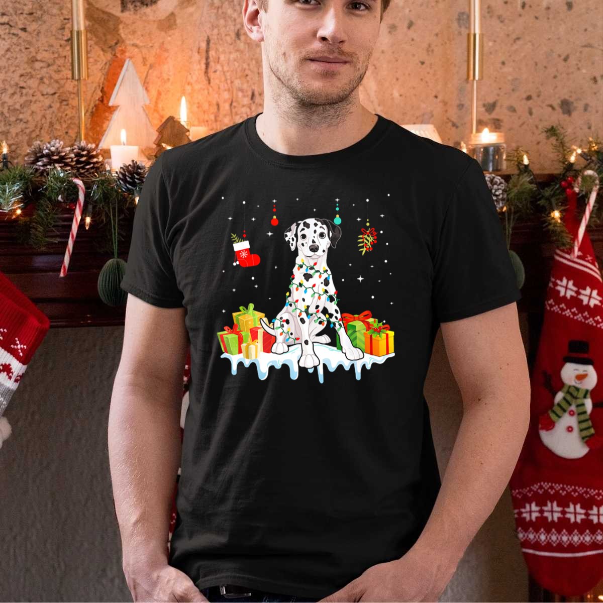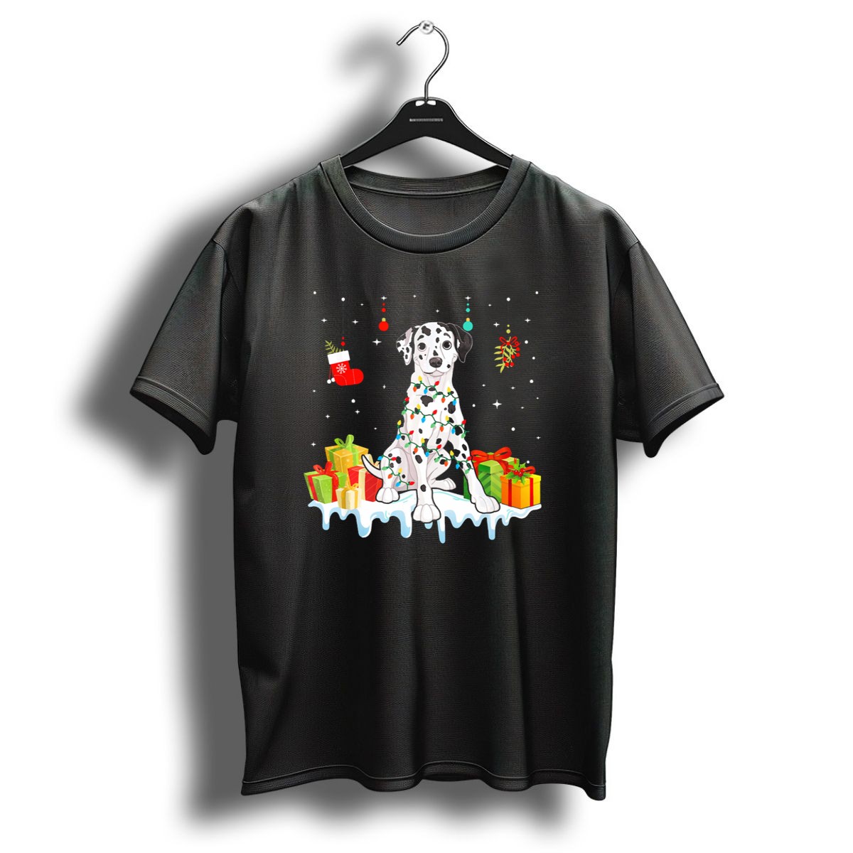 Celebrate the festive spirit with our charming Dalmatian-themed T-shirt, perfect for dog lovers and holiday enthusiasts alike! This unique design showcases an adorable Dalmatian surrounded by gifts and Christmas decorations, making it an ideal choice for casual wear, themed events, or simply spreading holiday cheer. Crafted for comfort and style, this fan-made graphic tee is printed in the USA, ensuring you stand out during the most wonderful time of the year.