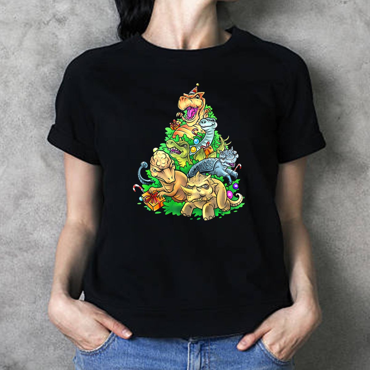 Get ready to unleash your inner holiday spirit with our Festive Dinosaur Christmas Tree T-Shirt! Perfect for dinosaur lovers and holiday enthusiasts alike, this playful tee showcases a whimsical design featuring a cheerful dinosaur surrounded by a beautifully decorated Christmas tree, candy canes, and festive ornaments. Whether you’re attending a themed event, celebrating with family, or just enjoying daily wear during the holiday season, this shirt is your go-to choice for fun and comfort. Plus, it’s fan-made and printed right here in the USA, making it a unique addition to your festive wardrobe!