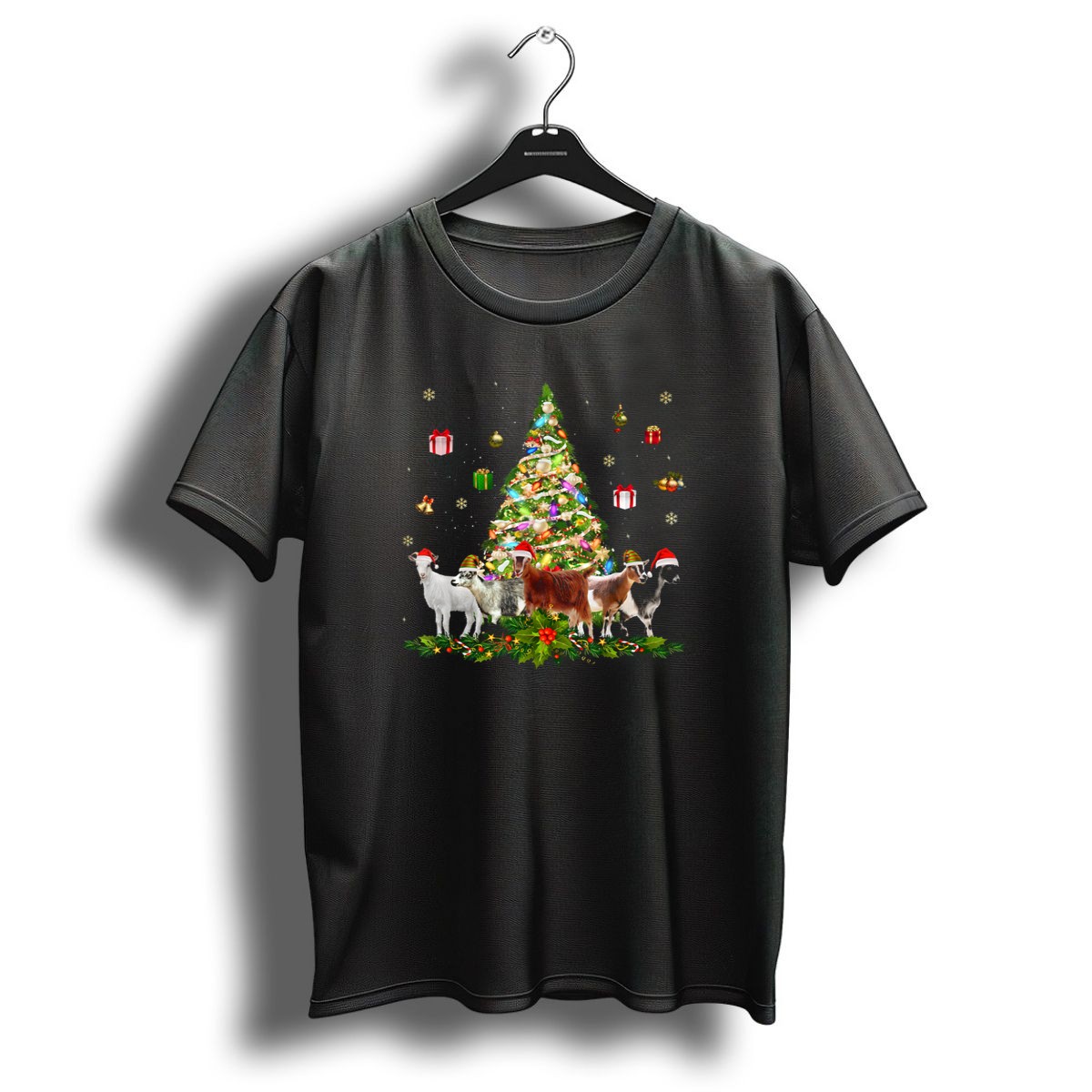 Celebrate the holiday season with our Festive Goats By Christmas Tree With Holiday Gifts And Decorations T-Shirt! This whimsical design is perfect for animal lovers and holiday enthusiasts alike, making it an ideal choice for casual gatherings, themed events, or simply spreading cheer during daily wear. Crafted with care and printed in the USA, this shirt combines festive spirit with comfort, ensuring you look great while enjoying the festivities.