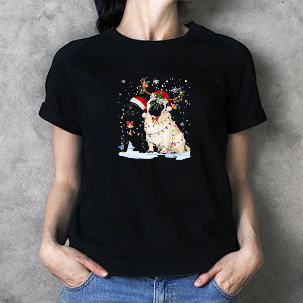 Celebrate the holiday season in style with our Festive Pug Christmas T-Shirt! This whimsical design features adorable pugs sporting Santa hats and reindeer antlers, making it the perfect choice for dog lovers and holiday enthusiasts alike. Ideal for casual wear, themed events, or simply spreading cheer during the festive season, this shirt brings a fun twist to your holiday wardrobe. Printed in the USA, it’s a fan-made design that showcases your love for pugs and the spirit of Christmas!