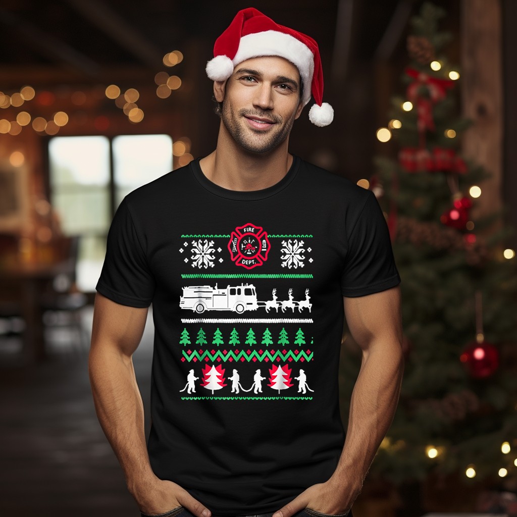 Celebrate the festive season with our Fire Dept Christmas Firetruck T-Shirt, a perfect blend of holiday cheer and firefighting spirit! Designed for everyone who loves the thrill of the season, this fan-made shirt features a playful print of Santa, reindeer, and snowflakes framed by a classic fire truck, making it ideal for casual wear, themed events, or daily outings. Crafted for comfort and style, it’s a unique addition to your winter wardrobe that showcases your love for firefighting and the holidays!