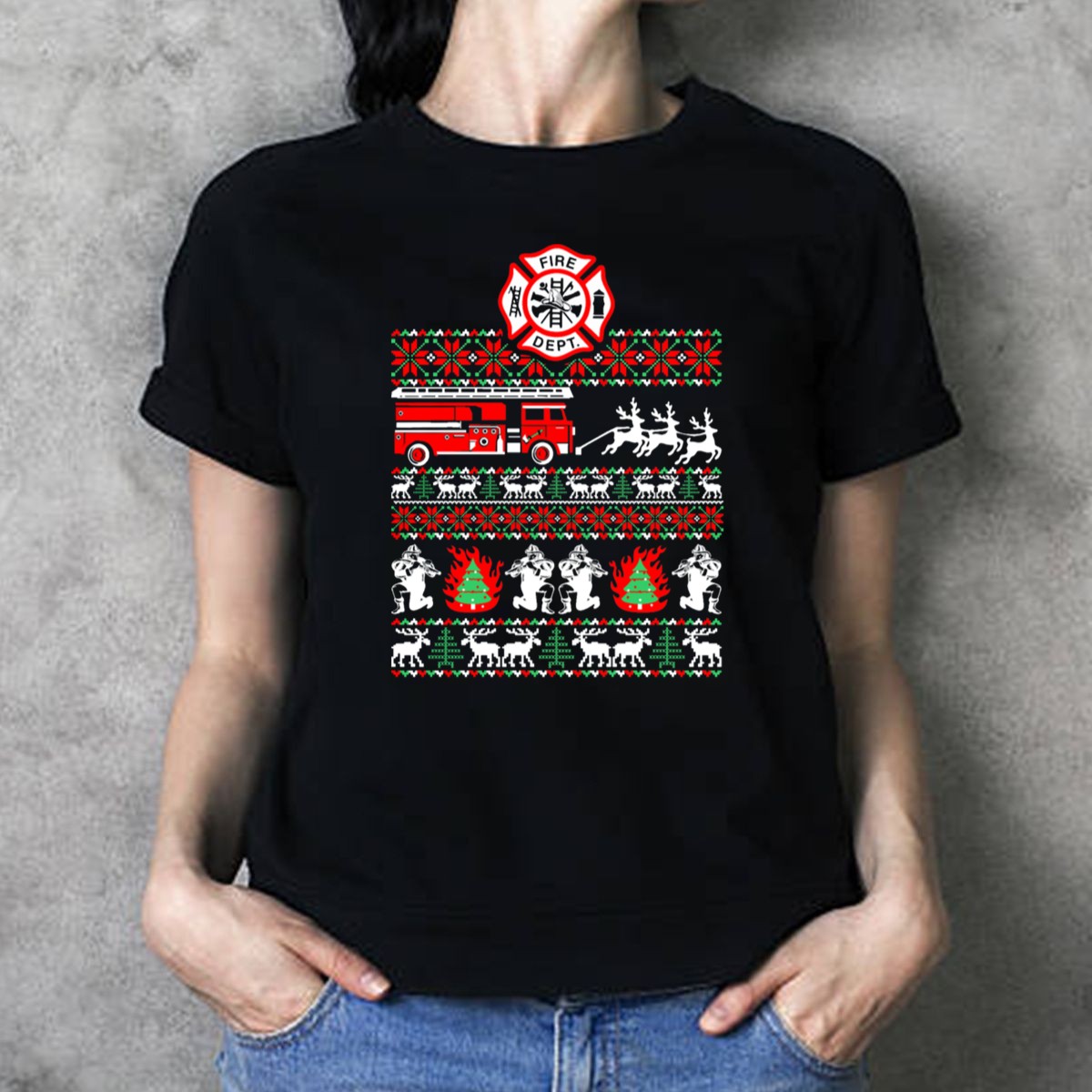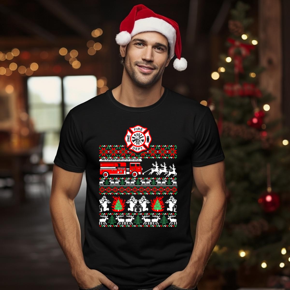 Celebrate the holiday season with a twist of humor and pride in our Fire Dept Firefighter Fireman Ugly Christmas Sweater Truck Reindeer T-Shirt! This fan-made design is perfect for firefighters, their families, and anyone who loves a good laugh during themed events or casual gatherings. Made for all-season wear, this shirt brings together comfort and festive spirit, making it an ideal choice for holiday parties or everyday casual outings.