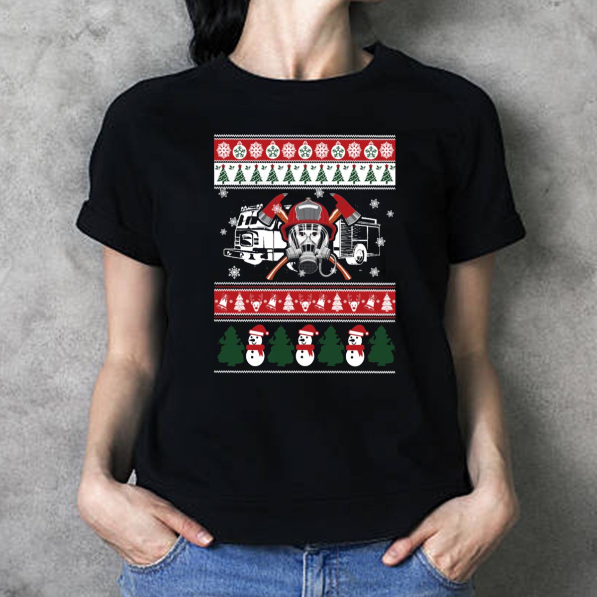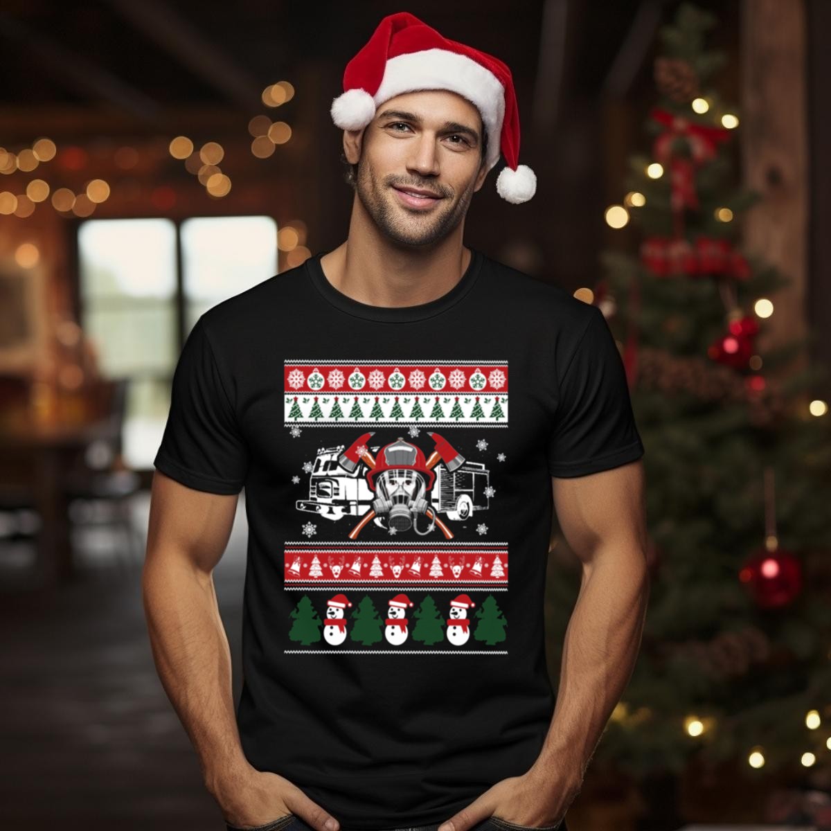 Be the first to review “Firefighter Christmas Festive Holiday Sweater Design With Fire Truck And Axes T Shirt”