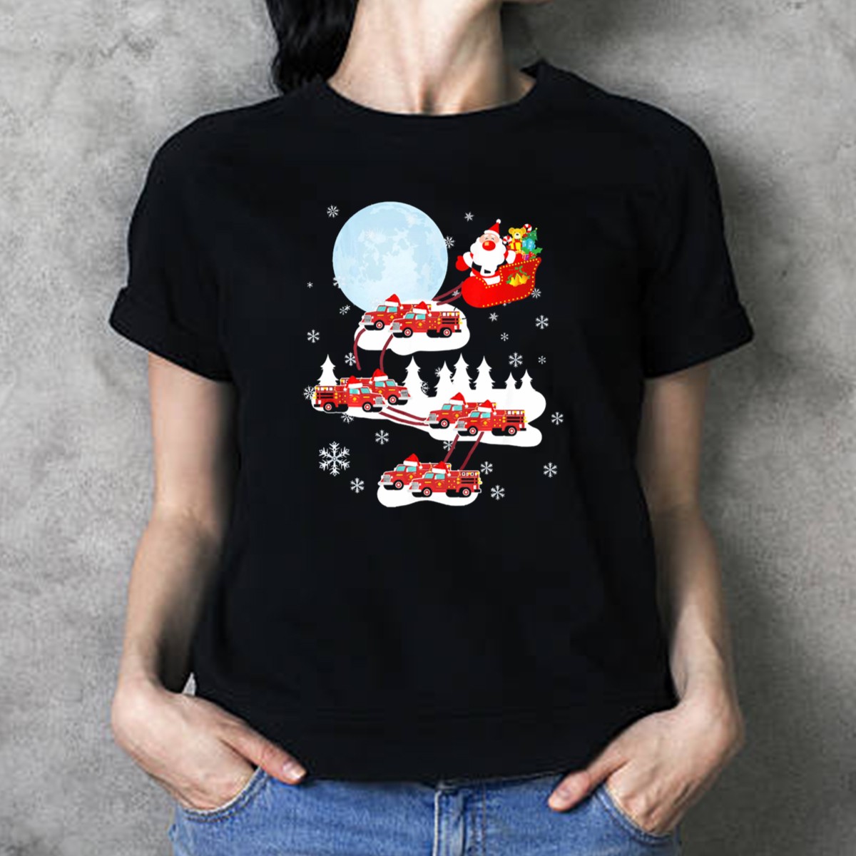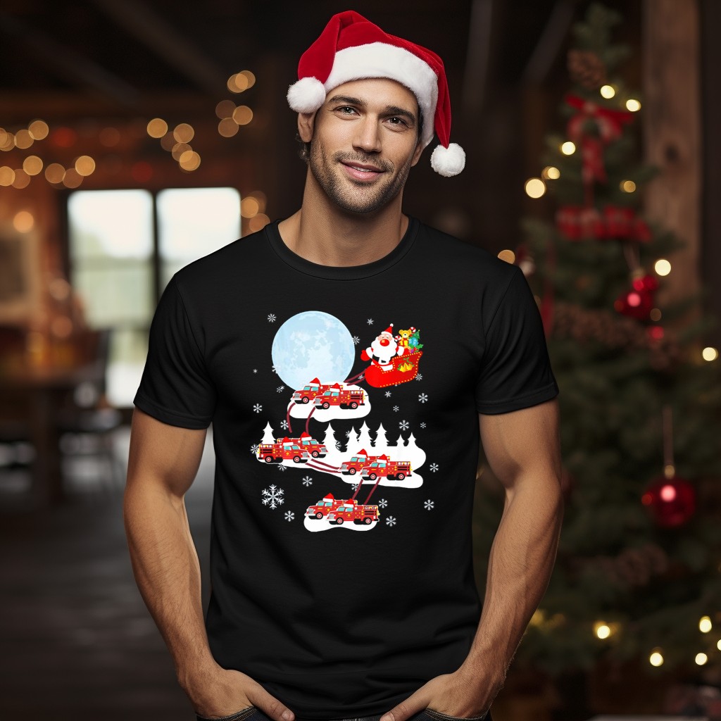 Be the first to review “Firefighter Fire Truck Santa Sleigh Christmas Scene T-Shirt”