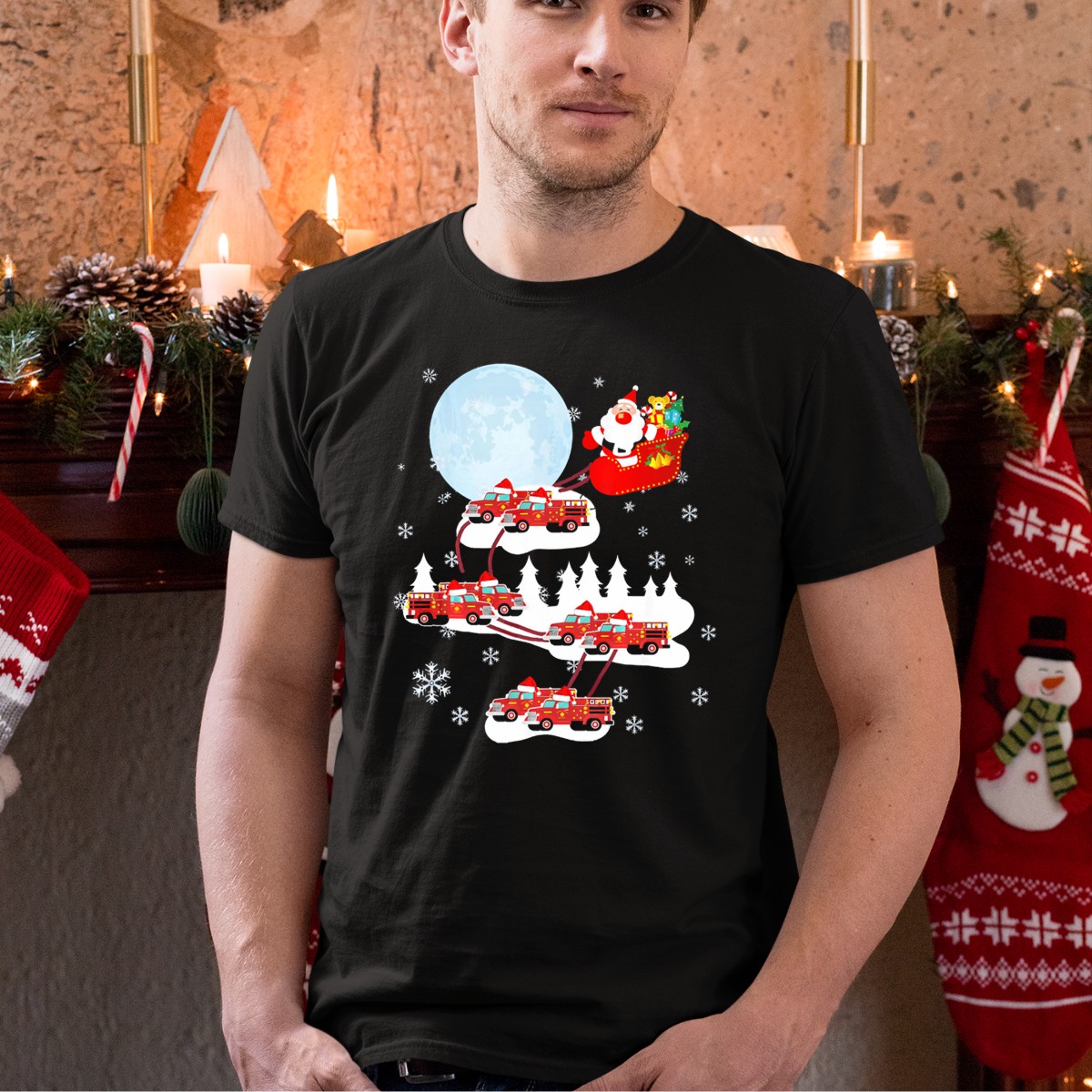 Firefighter Fire Truck Santa Sleigh Christmas Scene T-Shirt