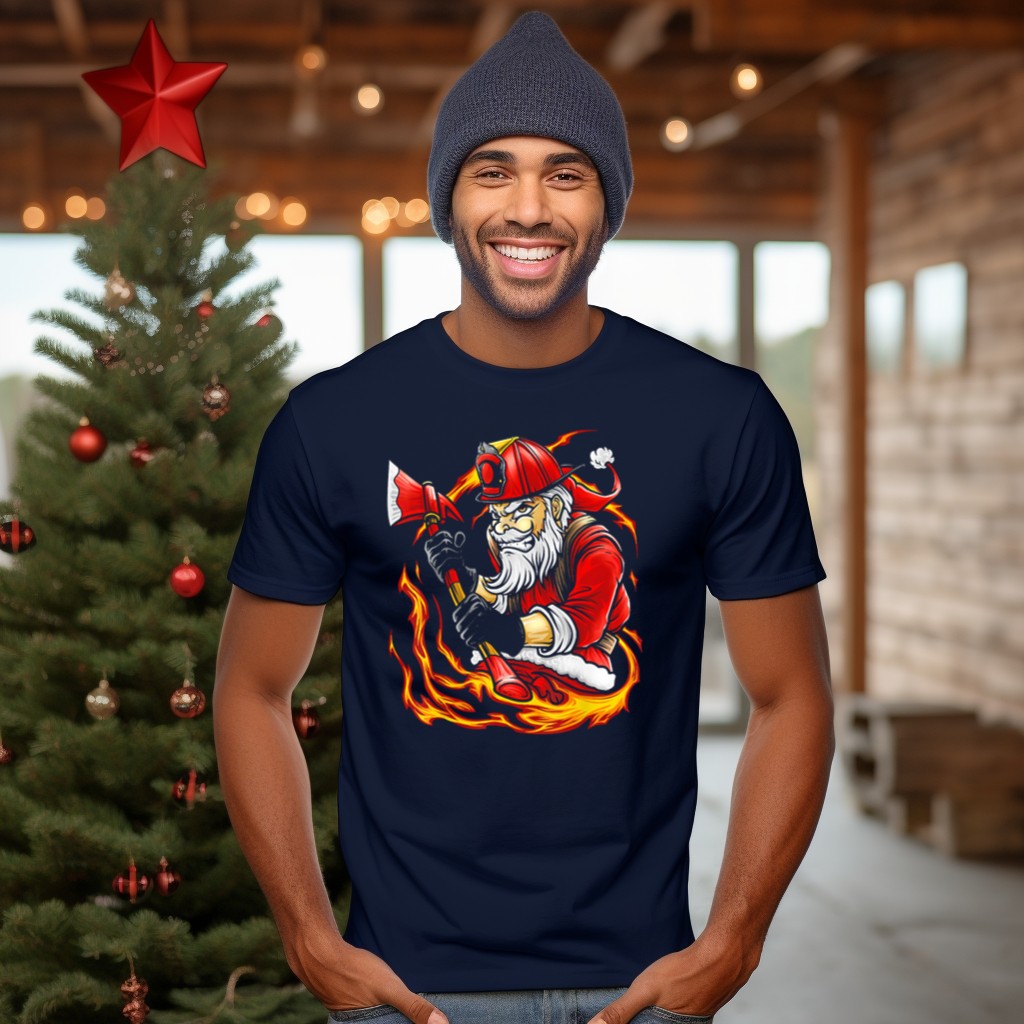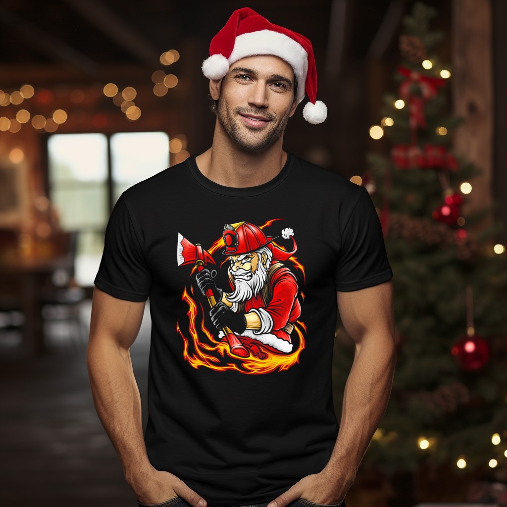 Celebrate the holiday season with a twist in our Firefighter Santa Claus With Axe And Flames Christmas T-Shirt! Perfect for those who love to add a touch of humor and festive spirit to their casual wear, this shirt is designed for anyone who wants to stand out during themed events or daily activities. With a fan-made design proudly printed in the USA, it’s not just a shirt; it’s a conversation starter that showcases your unique style and love for the holiday cheer!
