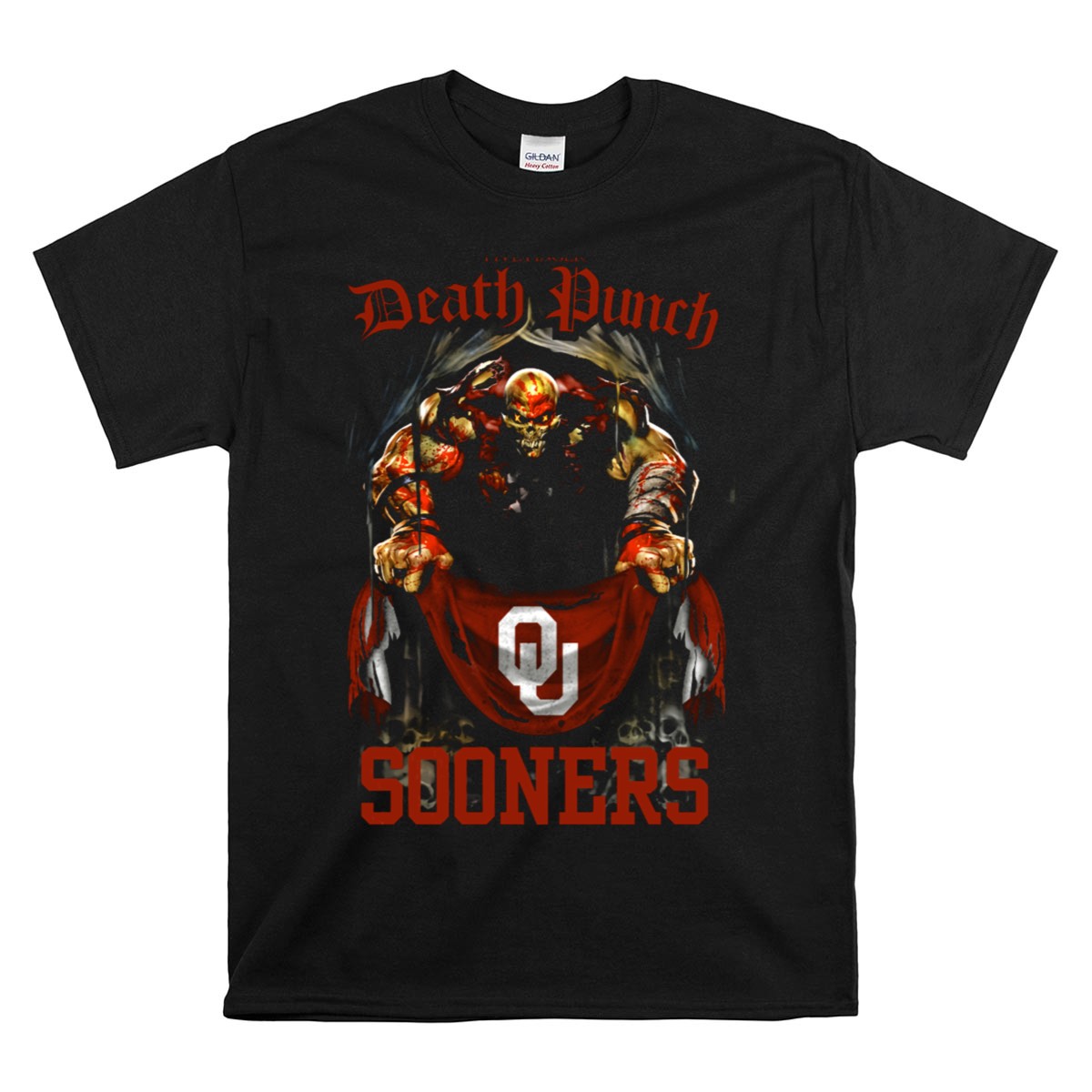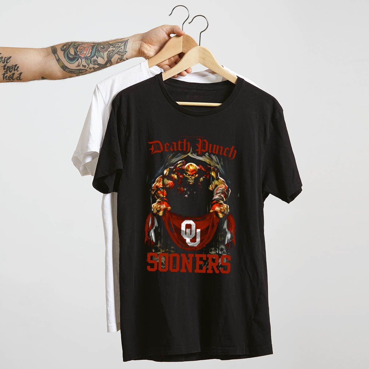 Show your support for the Oklahoma Sooners in style with this fan-made Five Finger Death Punch T-shirt! Perfect for die-hard fans, this classic tee is ideal for casual outings, themed events, or just daily wear around town. Its unique design, printed in the USA, combines your love for music and your favorite team, making it a must-have addition to your wardrobe.