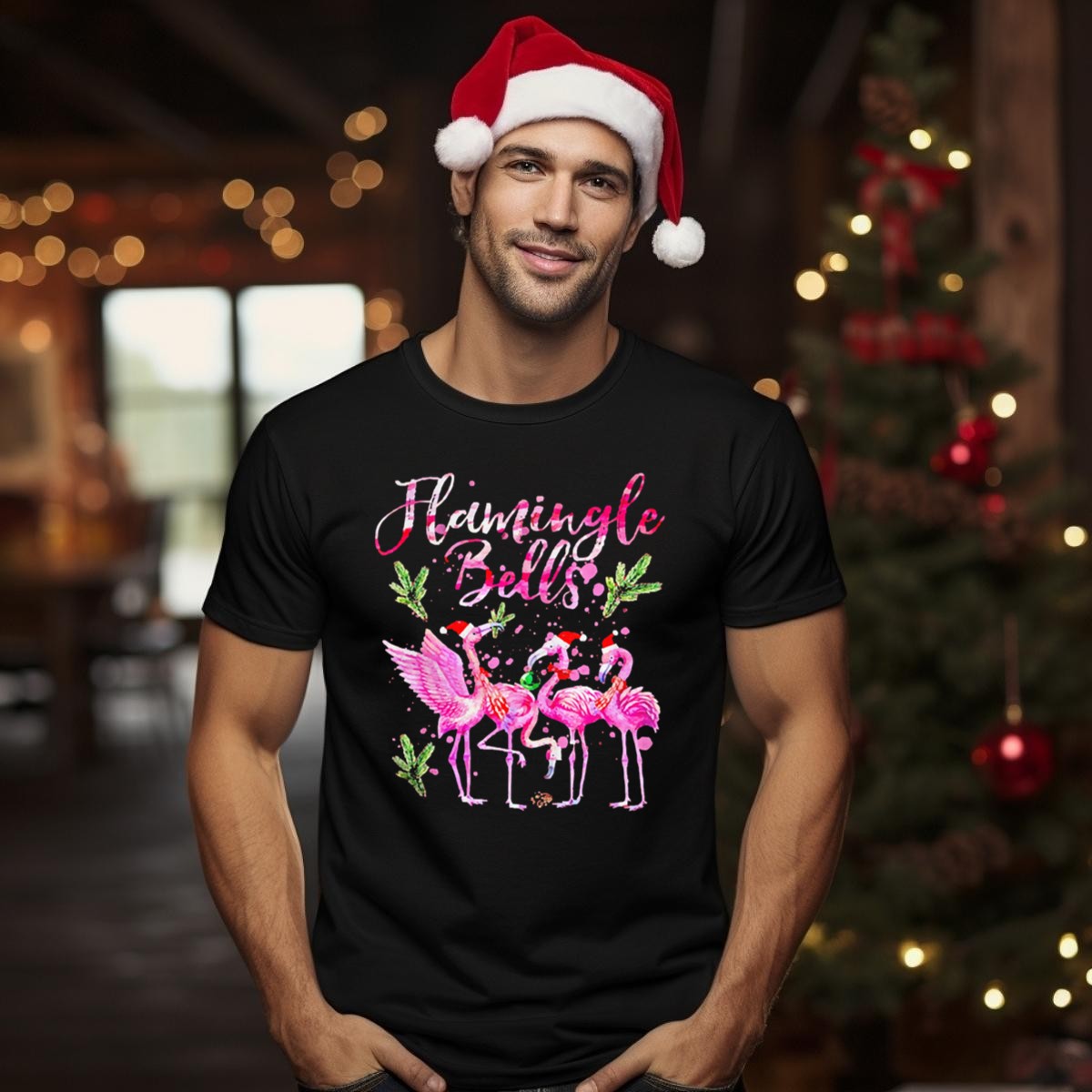 Be the first to review “Flamingle Bells Flamingos With Christmas Santa Hats And Holiday Greenery T Shirt 1”