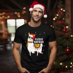 Be the first to review “Fleece Navidad Llama Christmas Santa Hat Reindeer Antlers Festive Lights T Shirt”