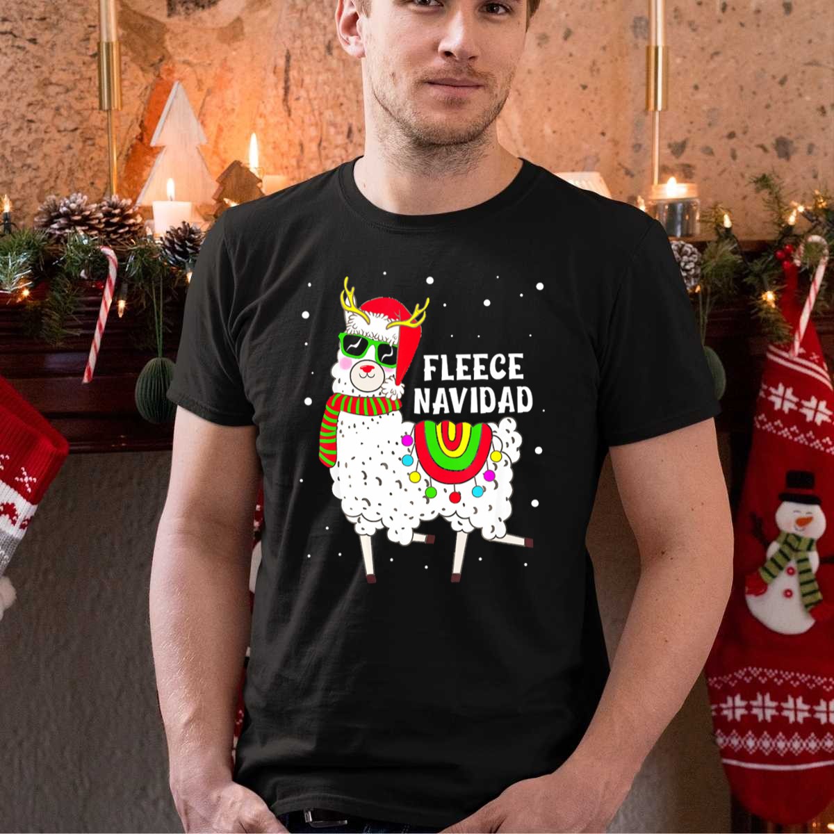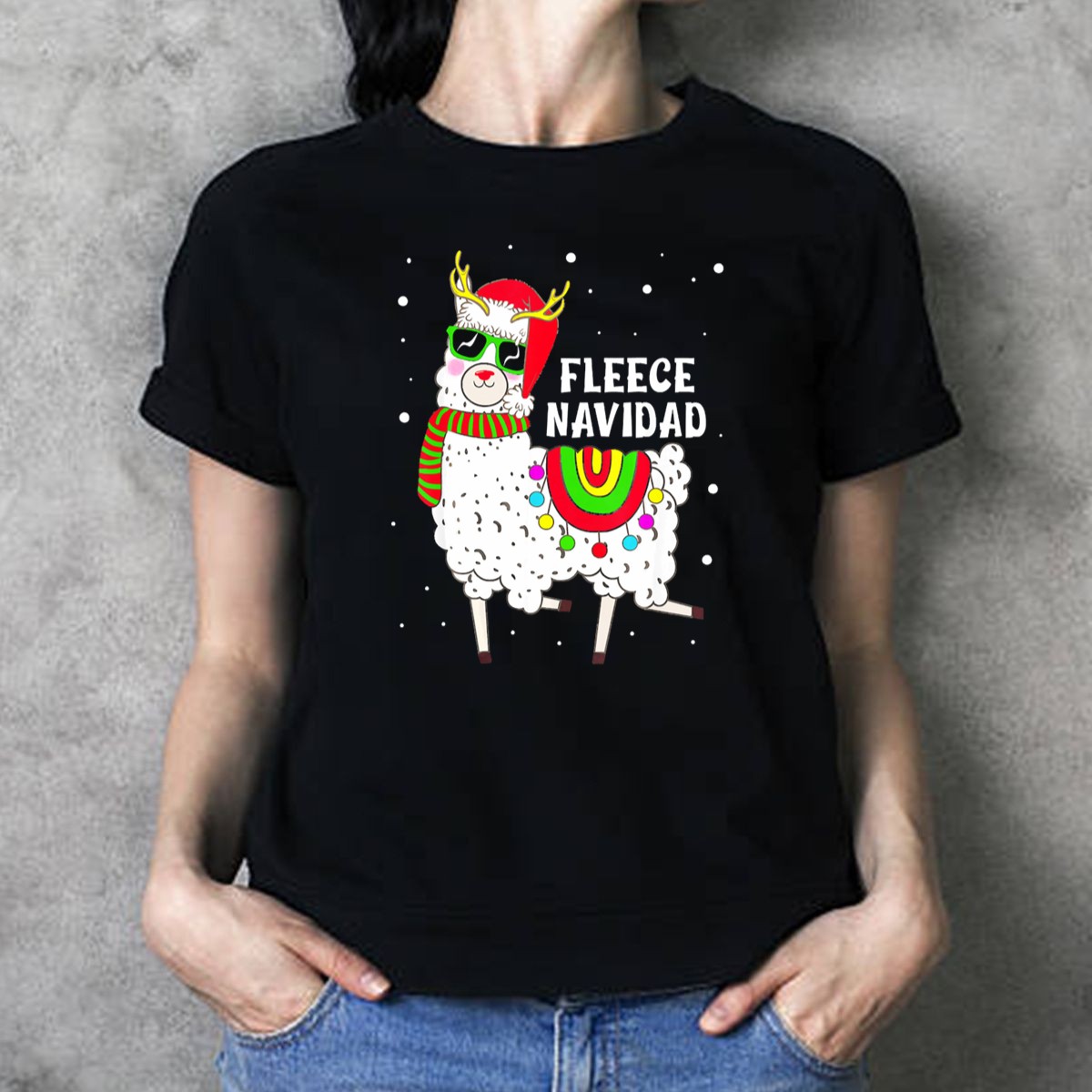 Fleece Navidad Llama Christmas Santa Hat Reindeer Antlers Festive Lights T Shirt