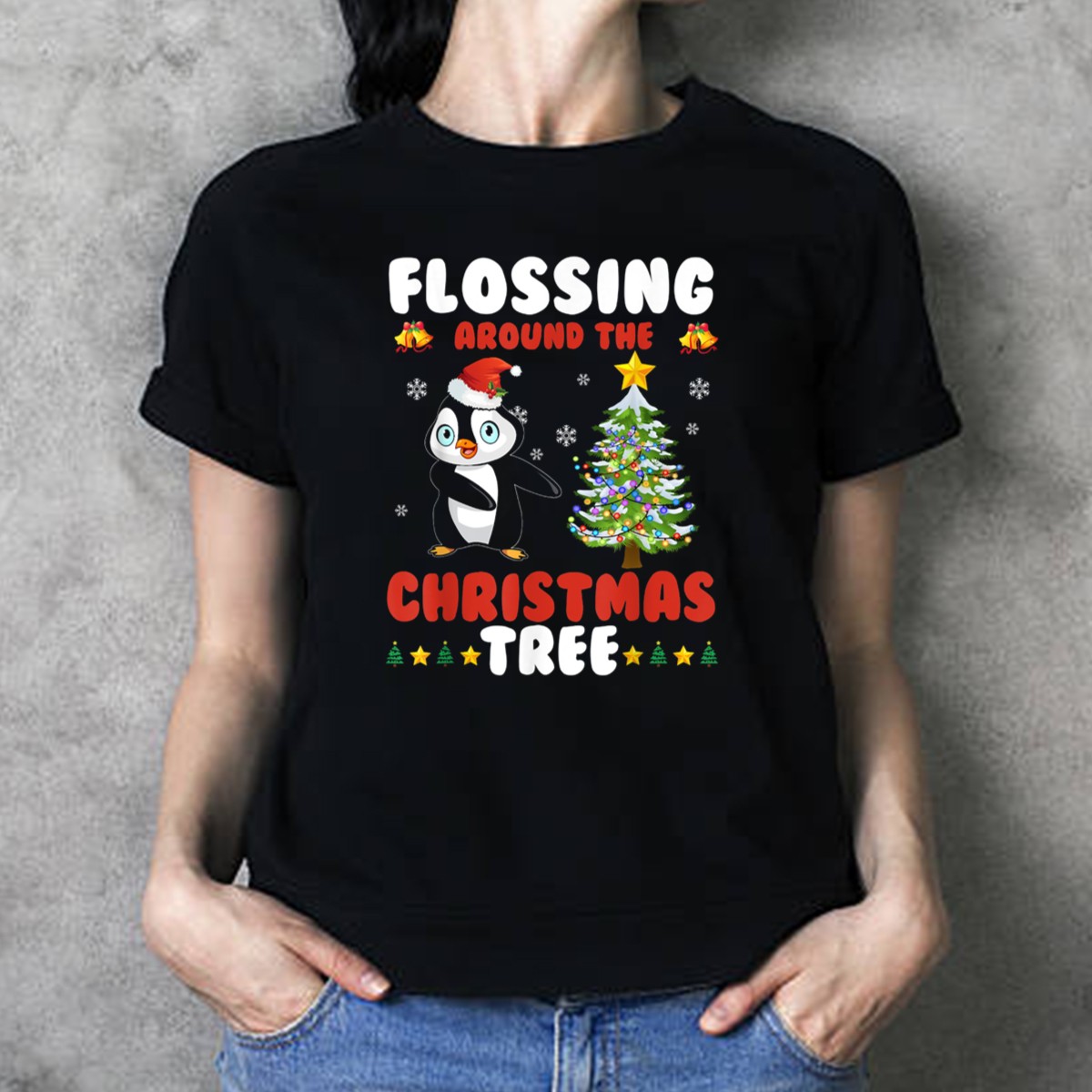 Celebrate the festive season in style with our “Flossing Around The Christmas Tree” T-shirt, featuring an adorable penguin rocking a Santa hat amidst cheerful bells and snowflakes. Perfect for holiday gatherings, themed events, or simply spreading joy during your daily wear, this fan-made design is a delightful way to showcase your love for the season. Crafted with comfort in mind, this shirt is sure to be a hit at any casual occasion!