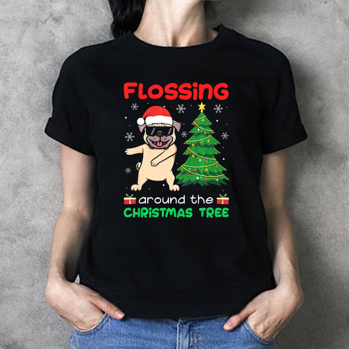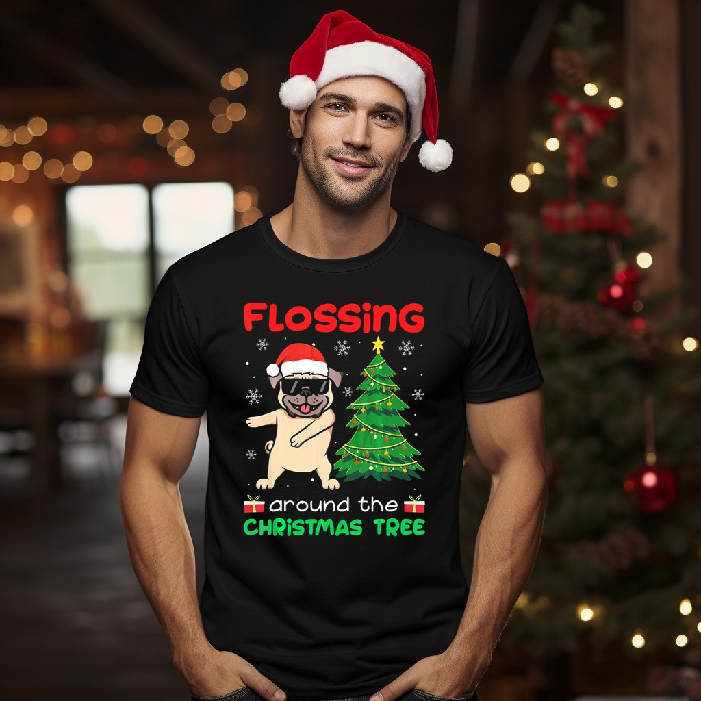 Celebrate the festive season with our Flossing Pug Around The Christmas Tree T-Shirt! Perfect for dog lovers and holiday enthusiasts alike, this fun and whimsical design features an adorable pug sporting a Santa hat, dancing joyfully around a beautifully decorated Christmas tree. Ideal for casual outings, themed events, or simply spreading holiday cheer, this shirt is a must-have for anyone looking to showcase their love for pugs and the joyous spirit of Christmas. Plus, it’s fan-made and proudly printed in the USA, ensuring you’re getting a unique piece that stands out.