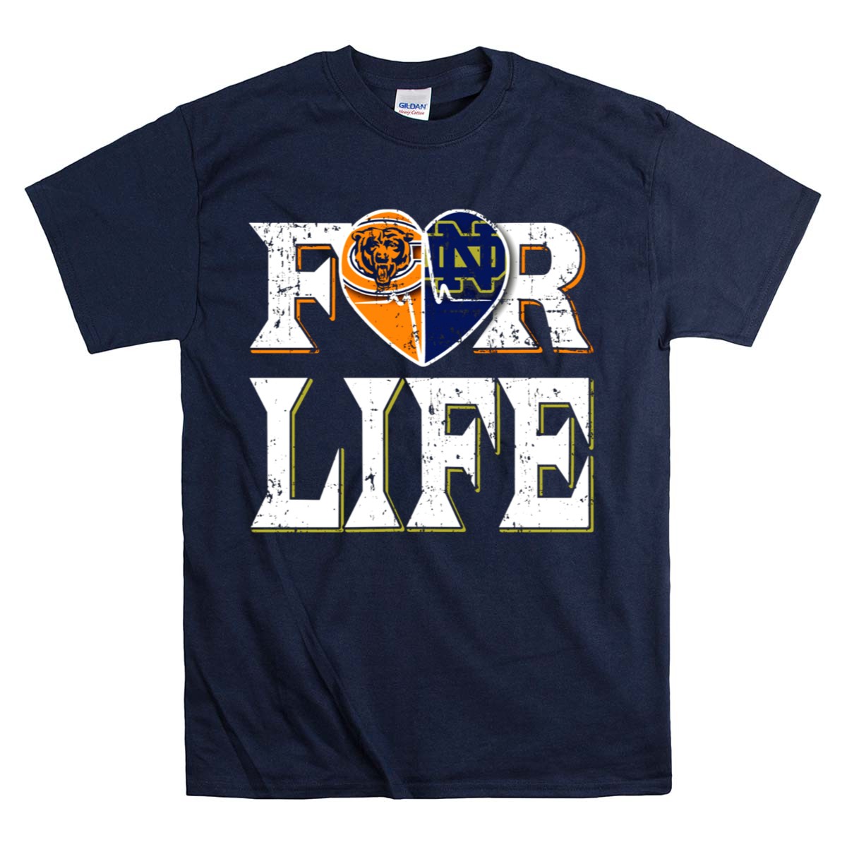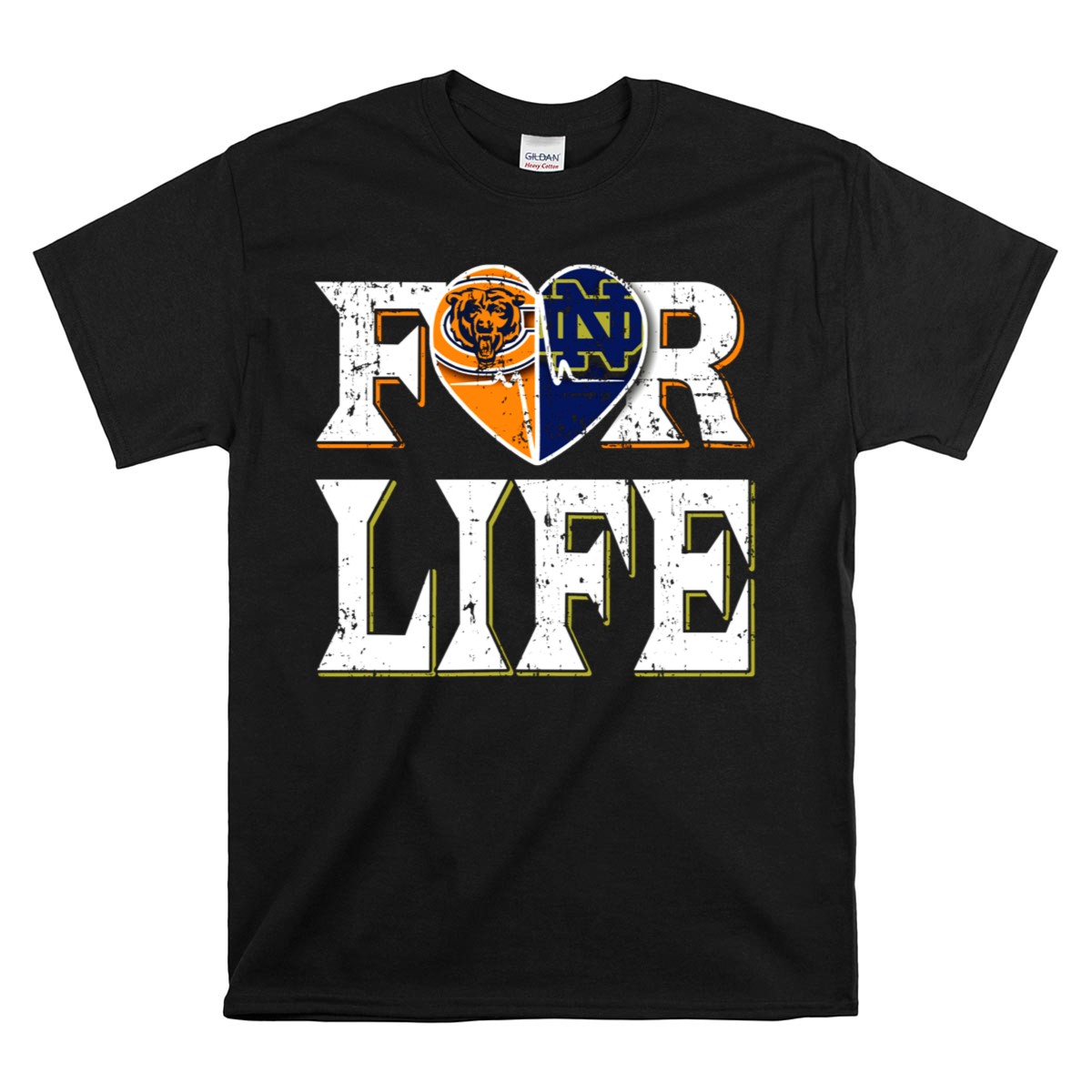 For Life Bears Notre Dame Fighting Irish Heart T-Shirt