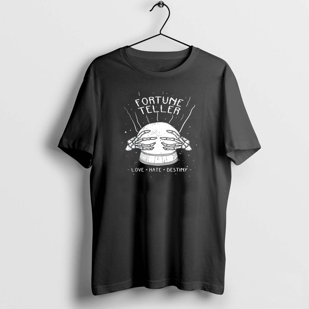 Be the first to review “Fortune Teller Skeleton Love Hate Destiny Halloween Sayings T-Shirt”