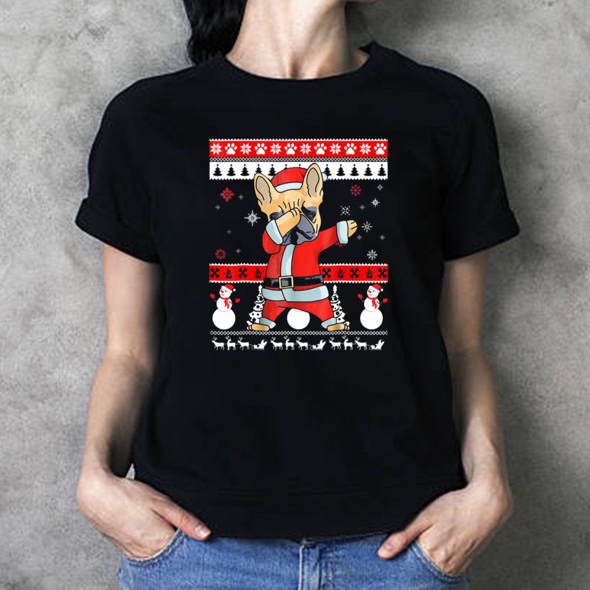 Be the first to review “French Bulldog Christmas Frenchie Santa Dabbing Ugly T-Shirt”