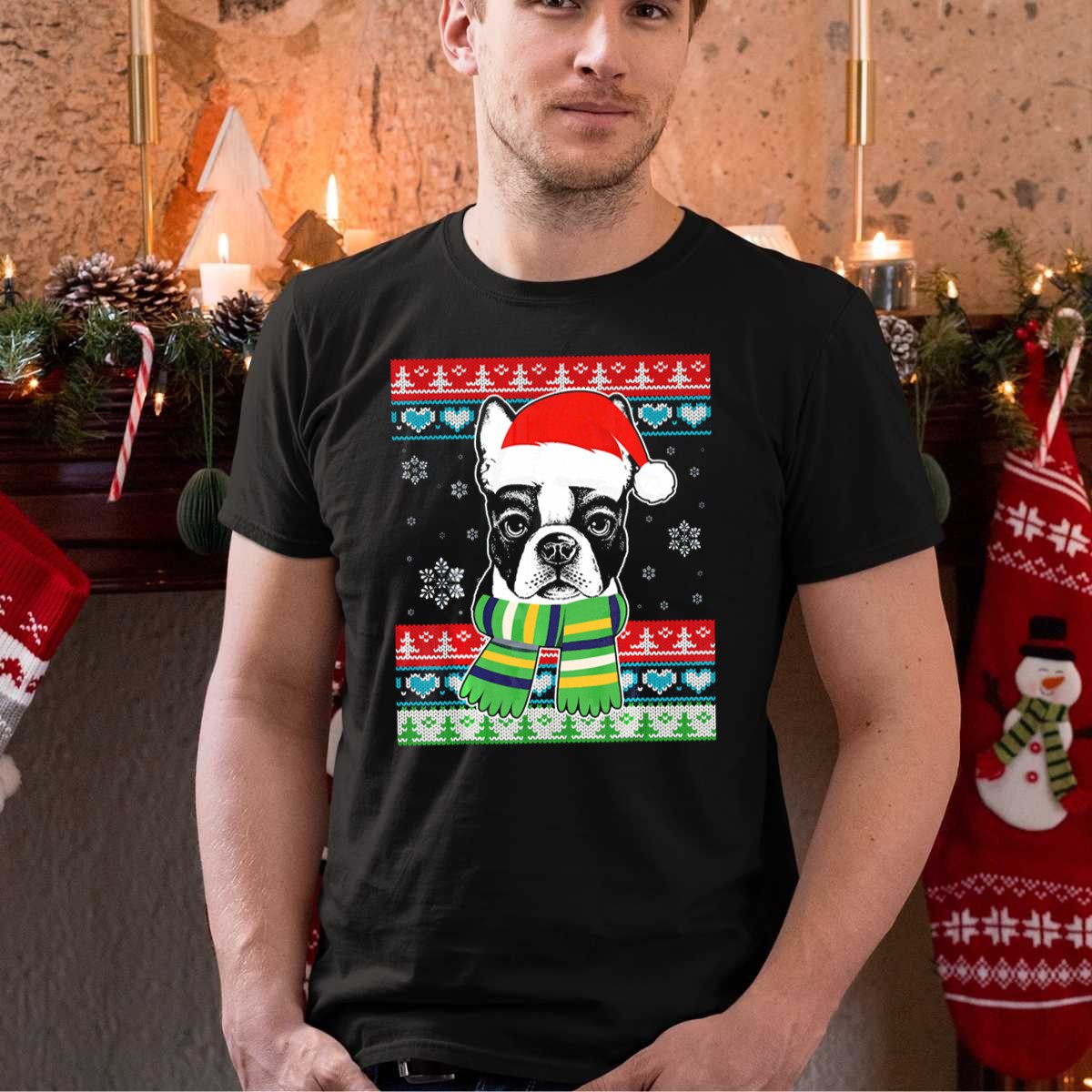 Celebrate the holiday season in style with our French Bulldog Christmas Tree T-Shirt! Perfect for dog lovers and festive spirits alike, this charming tee features an adorable graphic of a French Bulldog adorned with a Santa hat and scarf, surrounded by whimsical snowflakes. Ideal for casual wear, themed events, or simply spreading holiday cheer throughout the day, this fan-made design printed in the USA is a must-have for anyone looking to showcase their love for both pups and Christmas.