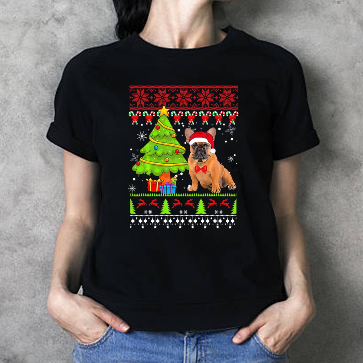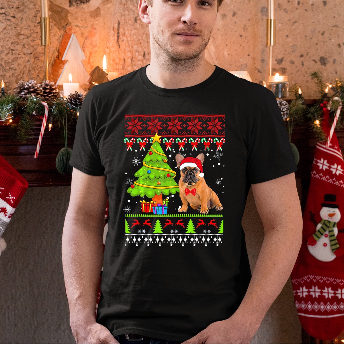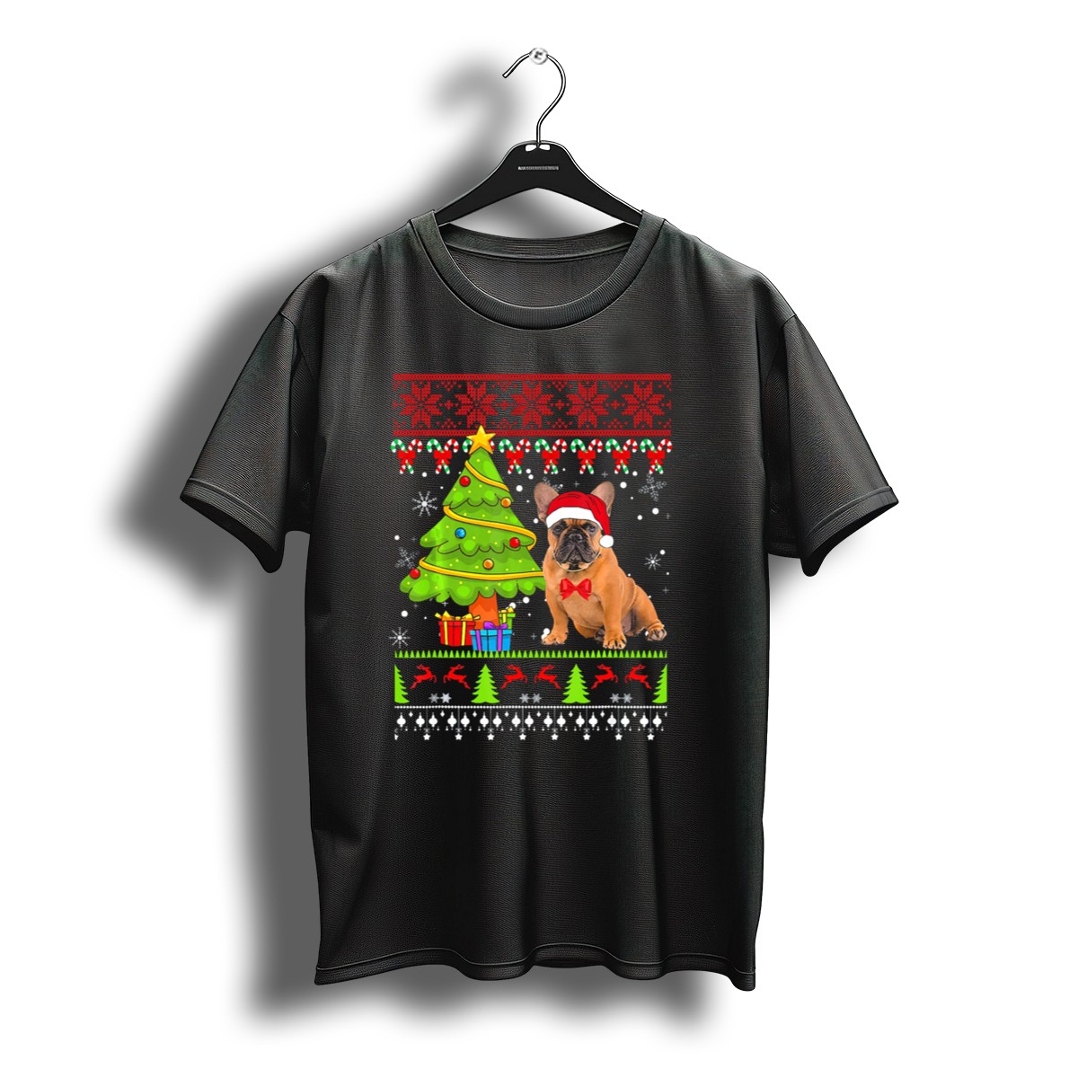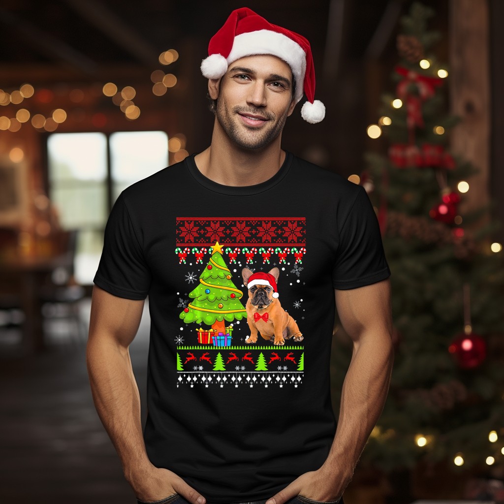 Be the first to review “French Bulldog Ugly Christmas Sweater With Tree And Santa Hat T-Shirt”