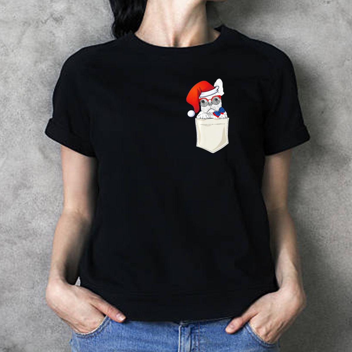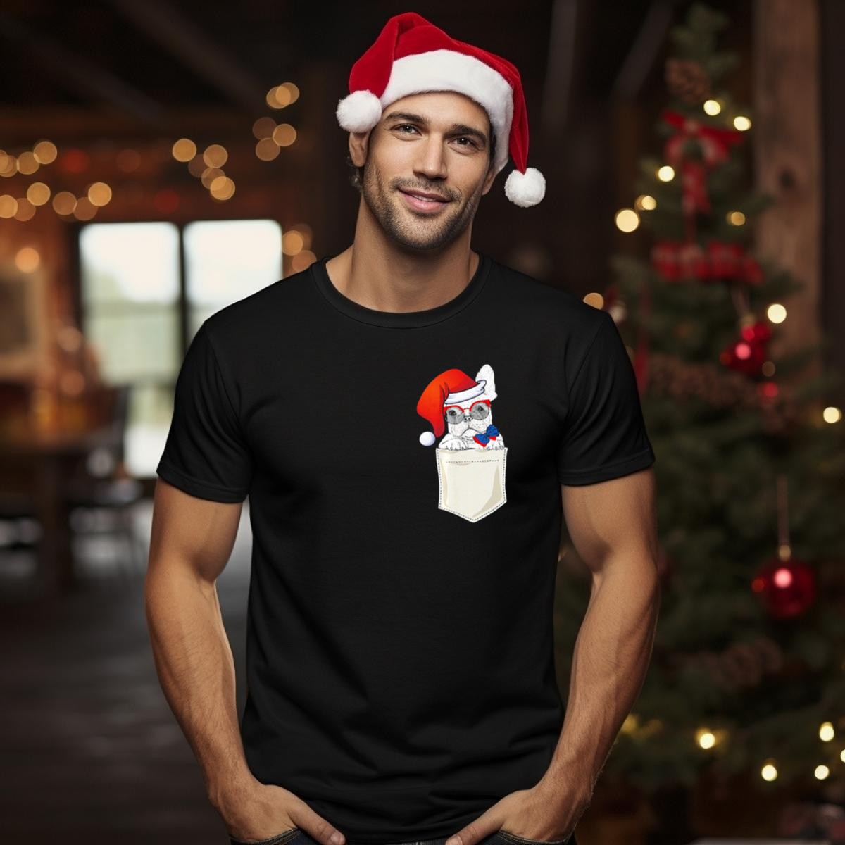 Celebrate the festive season in style with our charming French Bulldog Wearing Santa Hat In Pocket T-Shirt! Perfect for dog lovers and holiday enthusiasts, this delightful graphic tee adds a playful touch to your casual wear. Whether you’re attending a themed event, enjoying daily outings, or simply spreading holiday cheer, this shirt is a must-have addition to your wardrobe, showcasing a fun and unique design printed right here in the USA.