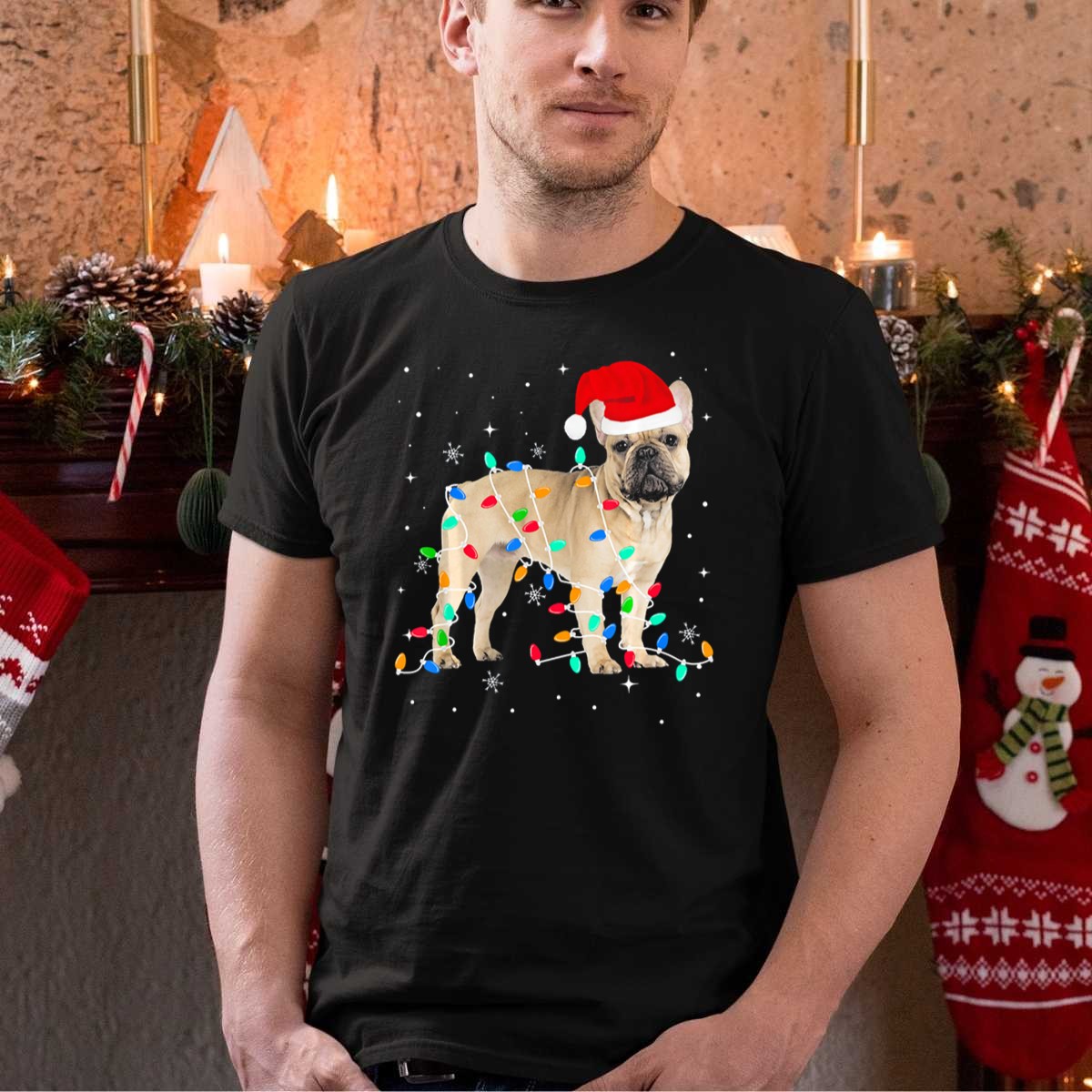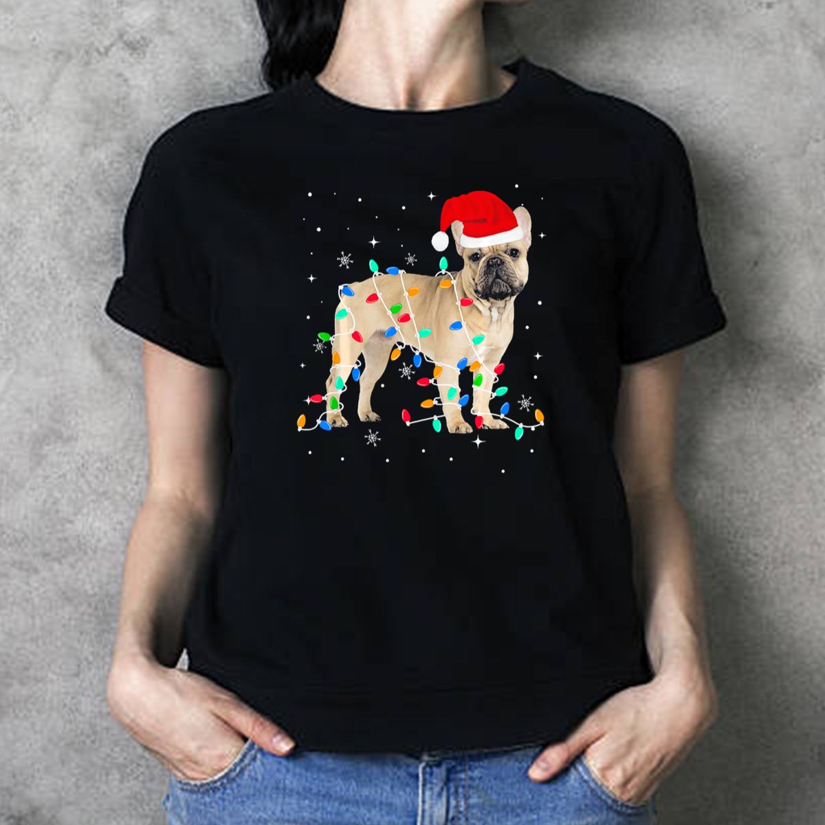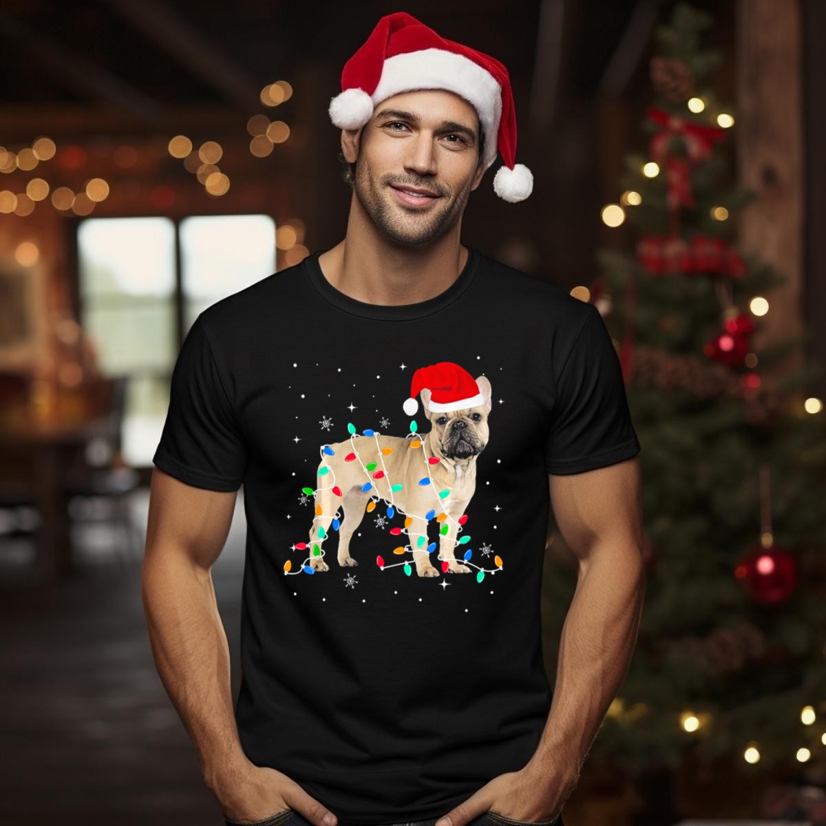 Embrace the festive spirit with our charming French Bulldog Wrapped In Christmas Lights T-Shirt! Perfect for dog lovers and holiday enthusiasts alike, this delightful design features an adorable Frenchie donning a Santa hat and surrounded by twinkling lights and snowflakes. Whether you’re attending a holiday party, enjoying a cozy family gathering, or just spreading cheer during the season, this shirt is a must-have for your casual wardrobe. Made with care and printed in the USA, it’s an excellent way to showcase your love for dogs and the magic of Christmas!