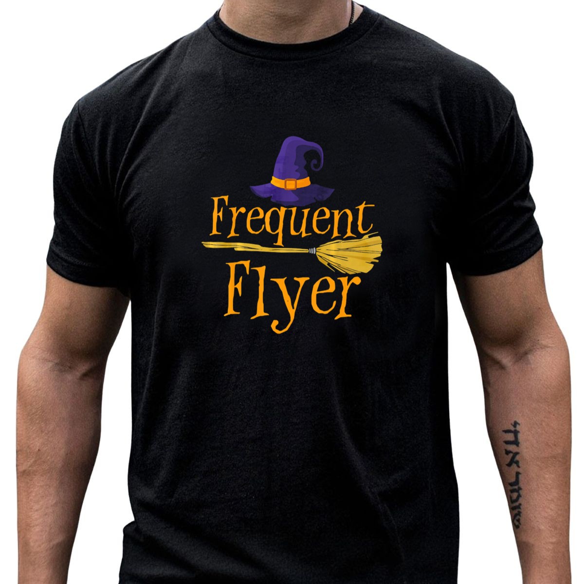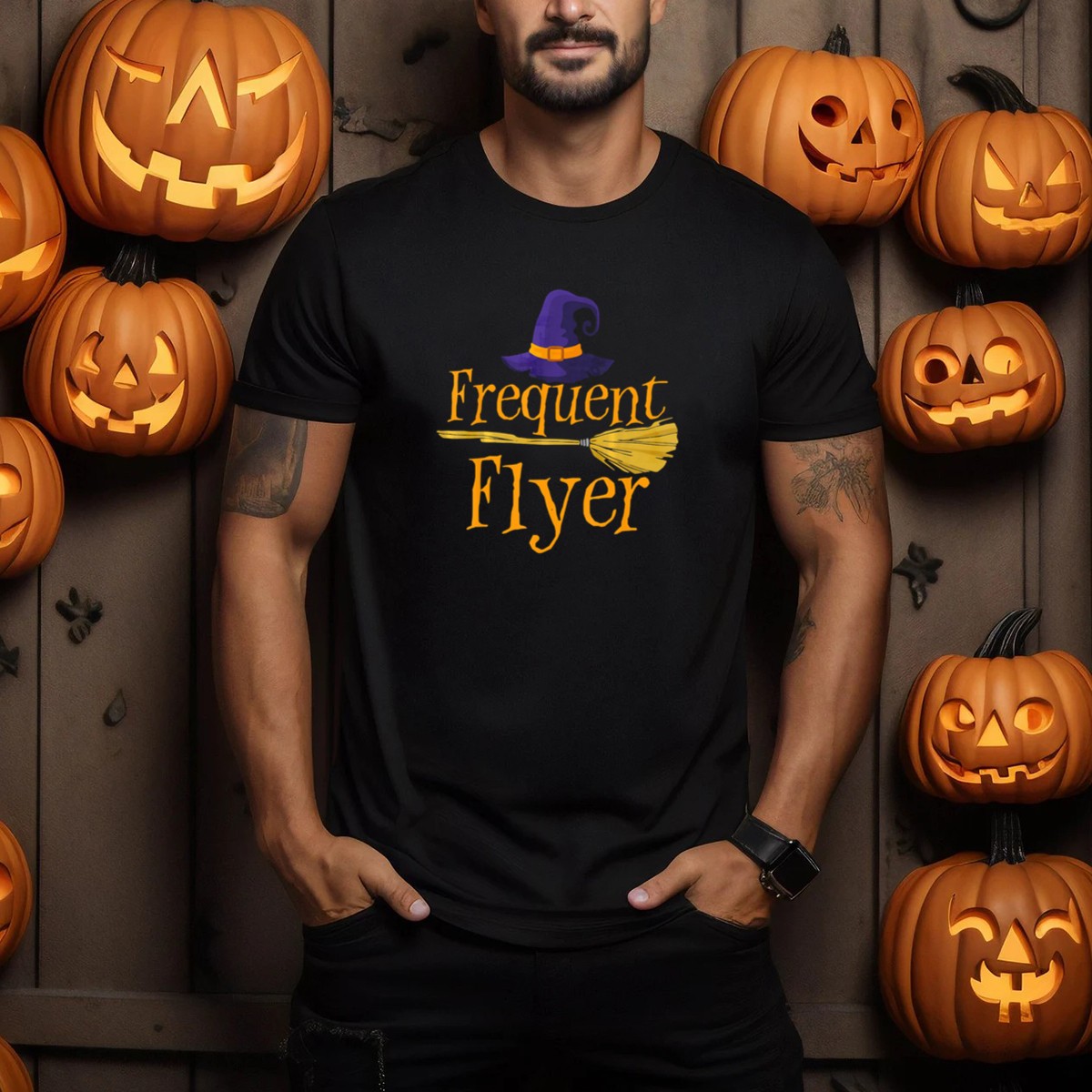 Embrace your inner witch with our Frequent Flyer Witch Hat and Broom Halloween T-Shirt! Perfect for those who love to celebrate the spooky season in style, this tee features a fun and whimsical design that’s ideal for Halloween parties, casual outings, or themed events. Crafted for comfort and durability, it’s a must-have for any fan of all things magical and mysterious, making it a unique addition to your festive wardrobe.