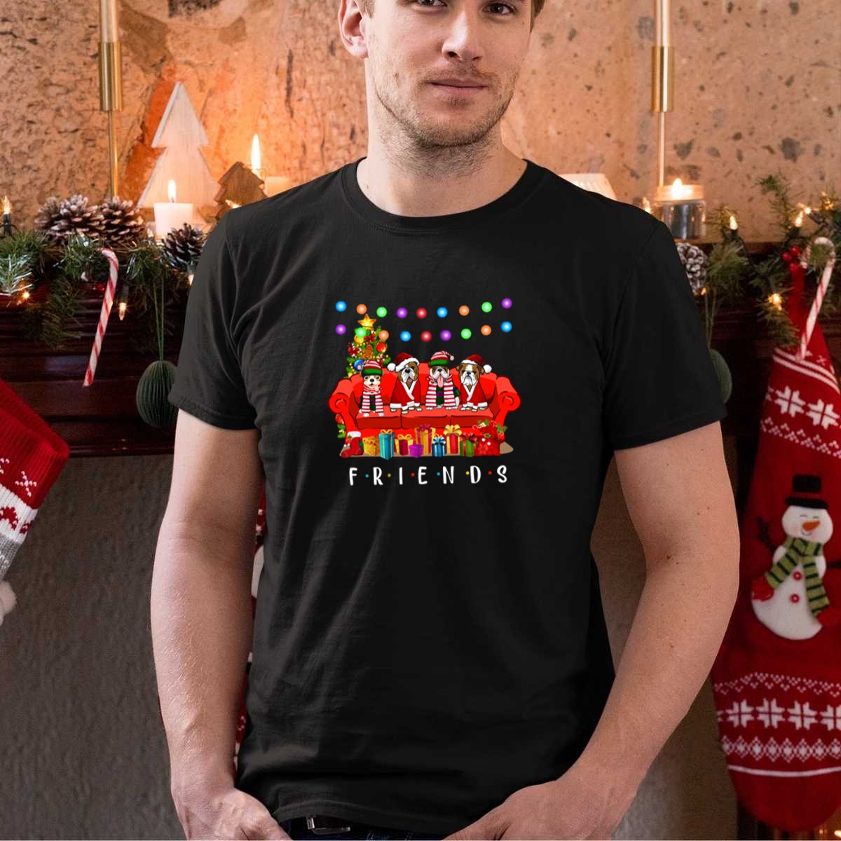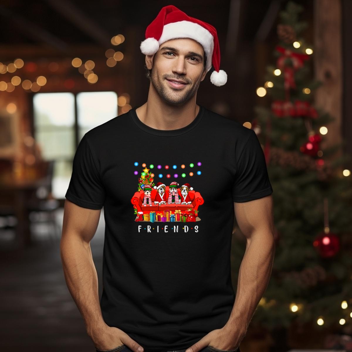 Celebrate the holiday season with our Friends Christmas Dogs Santa Hats Lights Gifts T-Shirt! Perfect for dog lovers and fans of the iconic series, this fun and festive tee is ideal for casual gatherings, themed events, or simply spreading cheer in your daily wear. Its unique fan-made design, printed in the USA, combines festive spirit with comfort, making it a must-have for your all-season wardrobe.
