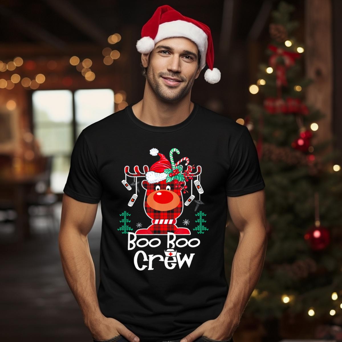 Get ready to spread some holiday cheer with our Funny Boo Boo Crew Reindeer T-Shirt! Perfect for the festive season, this playful shirt features a delightful reindeer design adorned with red plaid and Christmas elements, making it an ideal choice for family gatherings, themed events, or casual outings. Crafted for comfort and style, it’s a must-have for anyone looking to add a splash of fun to their winter wardrobe. Show off your holiday spirit while enjoying the soft, breathable fabric and classic fit that this shirt offers!