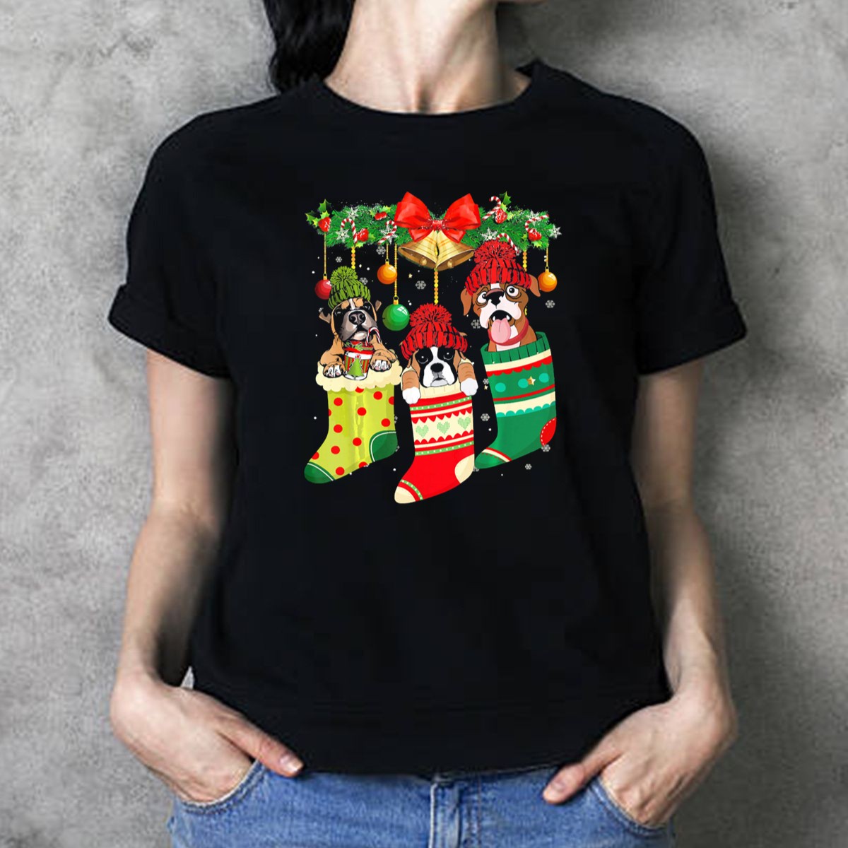 Get ready to spread some holiday cheer with our Funny Boxer Christmas Socks T-Shirt! This playful design features an adorable dog hanging in festive stockings, making it the perfect choice for dog lovers and holiday enthusiasts alike. Whether you’re attending a casual gathering, a themed event, or just lounging at home, this shirt adds a delightful touch to your festive wardrobe. Made for comfort and style, it’s a fun way to celebrate the season while showcasing your love for your four-legged friends!