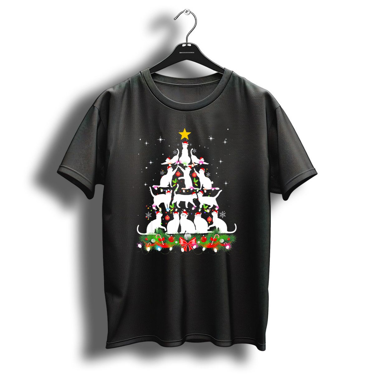 Celebrate the joy of the holiday season with our Funny Cats Christmas Tree Lights Snowflakes Star T-Shirt! Perfect for cat lovers and holiday enthusiasts alike, this playful tee brings a touch of whimsy to your casual wear. Whether you’re attending a festive gathering, lounging at home, or spreading holiday cheer at themed events, this shirt is sure to be a conversation starter. Featuring a fan-made design printed right here in the USA, it combines comfort and creativity for a truly unique addition to your wardrobe.
