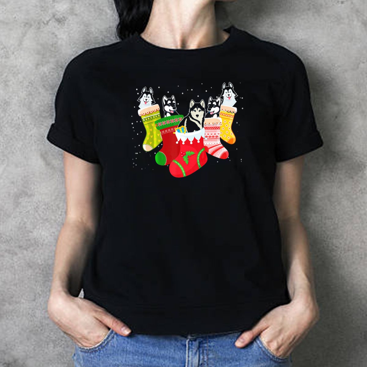 Celebrate the holiday season with our Funny Christmas Huskies In Festive Xmas Socks T-Shirt! This playful design is perfect for dog lovers and anyone who enjoys a good laugh during the festivities. Whether you’re attending a casual holiday gathering, themed events, or just lounging at home, this shirt is a delightful addition to your wardrobe. Made in the USA, it features a unique fan-made graphic that brings cheer and joy to all your seasonal outings.