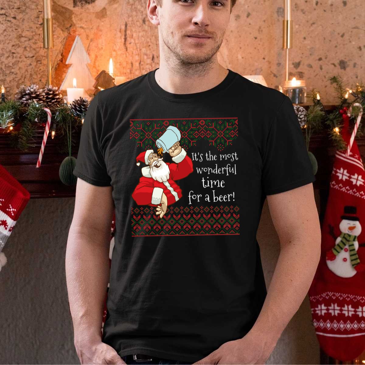 Funny Christmas Its The Most Wonderful Time For A Beer Santa T-Shirt