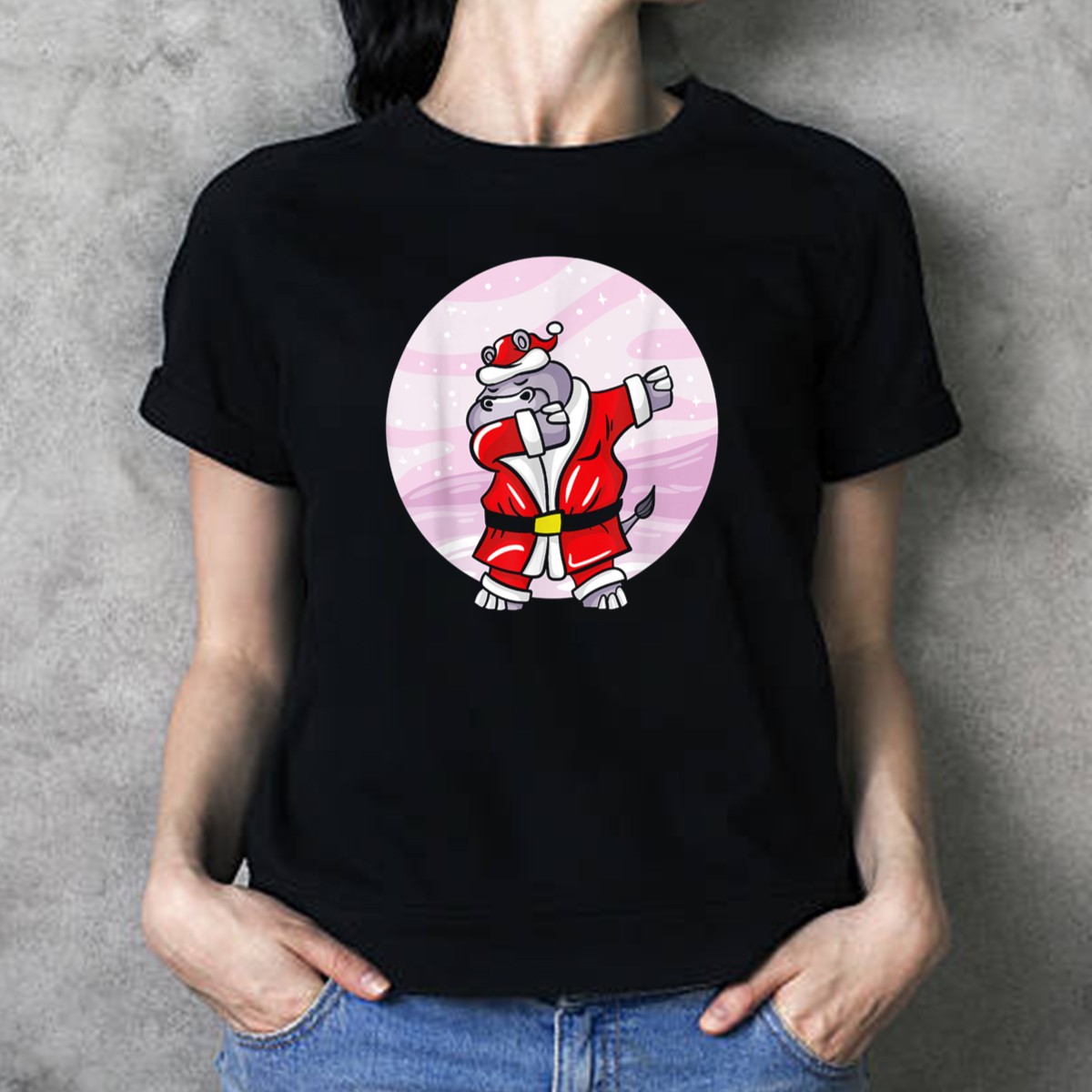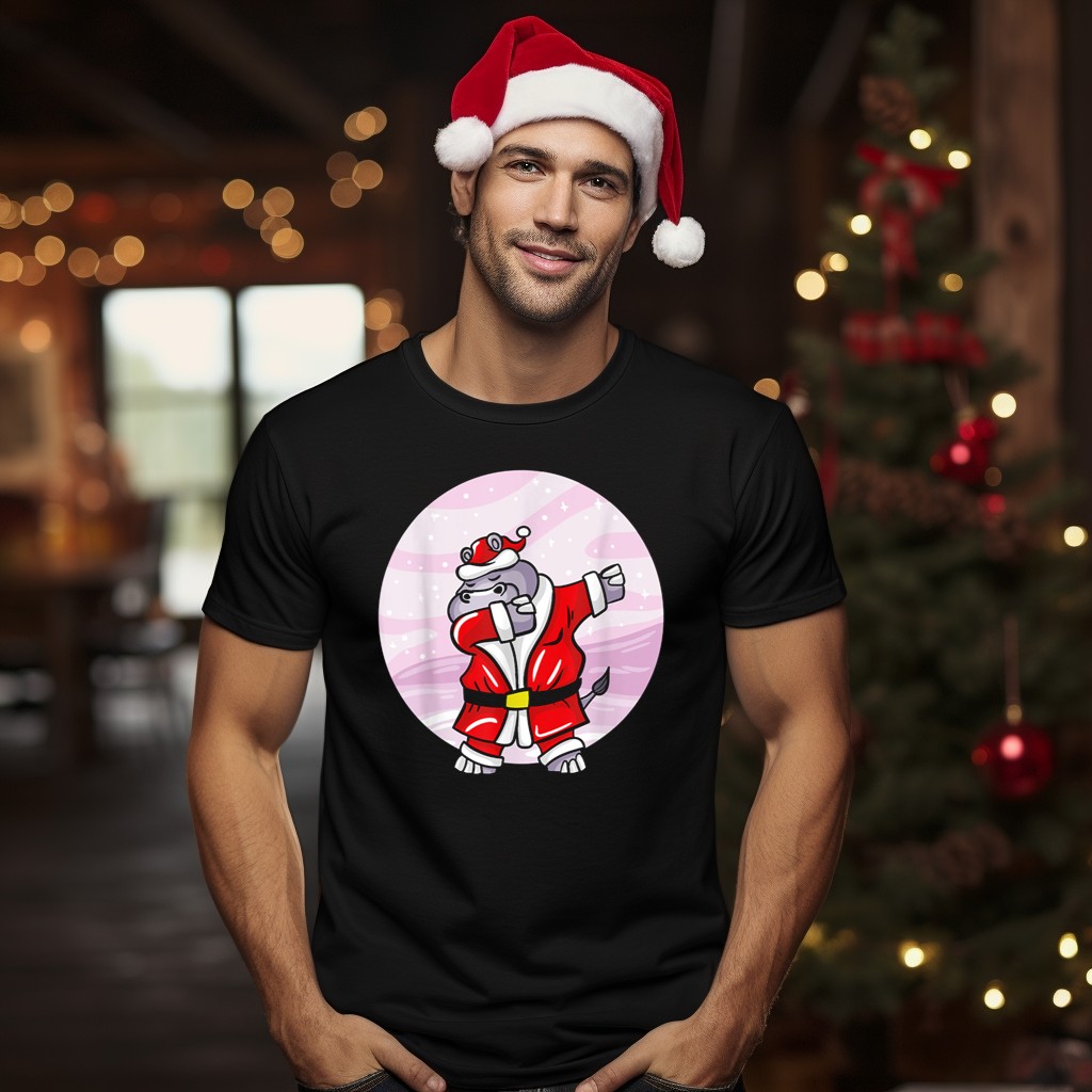Get ready to spread some holiday cheer with our Funny Dabbing Christmas Santa Claus Hippo T-Shirt! Perfect for anyone who loves to combine humor with festive spirit, this shirt features a playful hippo dressed in a classic red Santa suit, dabbing its way into the holiday season. Ideal for casual wear, themed events, or just lounging around during the festivities, this fan-made design is sure to bring smiles and laughter wherever you go. Made in the USA, it’s a must-have for anyone looking to add a touch of fun to their holiday wardrobe!