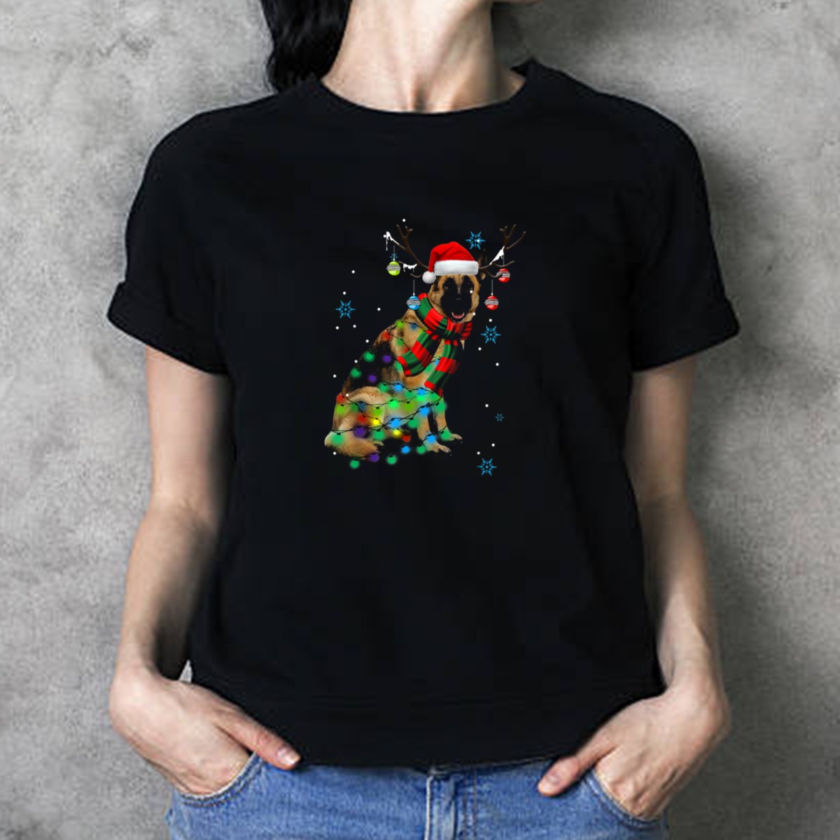 Be the first to review “Funny German Shepherd Dog Wearing Santa Hat And Reindeer Antlers T-Shirt”