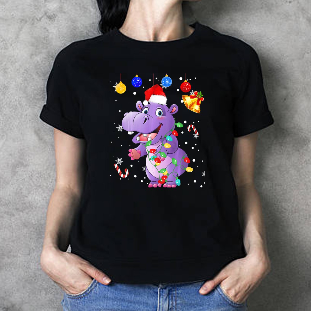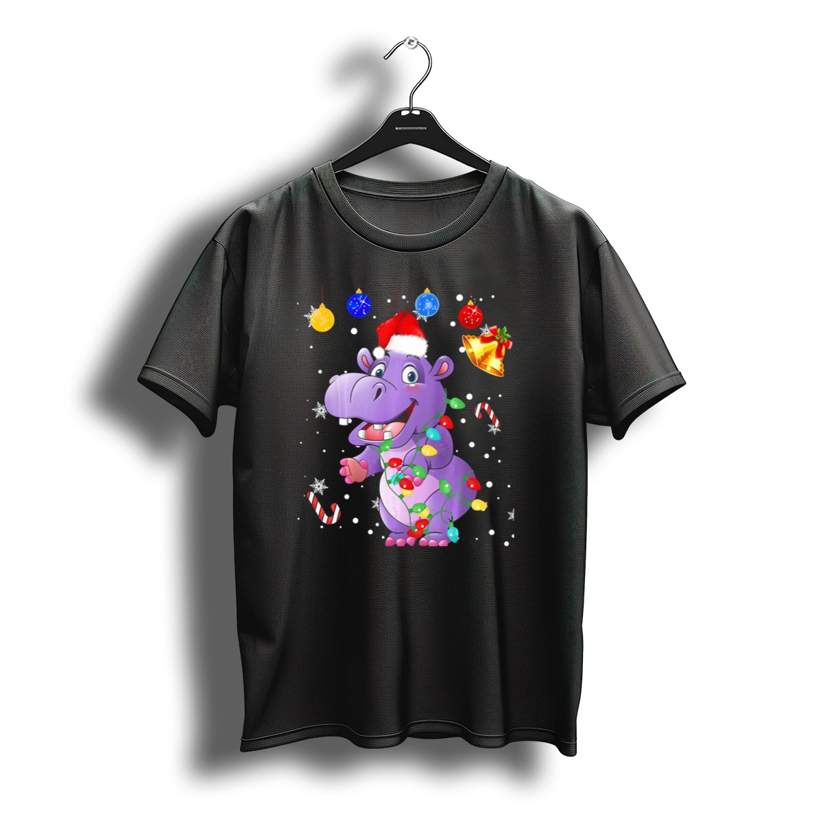 Get ready to spread some holiday cheer with our Funny Hippopotamus Wrapped In Christmas Lights Wearing Santa Hat T-Shirt! Perfect for animal lovers and festive spirits alike, this shirt adds a touch of whimsy to any casual attire. Whether you’re attending a themed party, enjoying a family gathering, or simply want to showcase your fun-loving personality during the holiday season, this tee is a must-have. Made with care in the USA, its unique design is sure to bring smiles and laughter wherever you go!