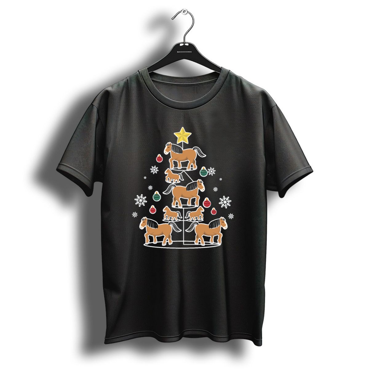 Celebrate the holiday season with our Funny Horse Christmas Tree T-Shirt, perfect for horse lovers and festive spirits alike! This unique design features a whimsical horse-themed Christmas tree adorned with snowflakes and ornaments, making it an ideal choice for casual wear, themed events, or just spreading cheer during daily activities. Crafted from high-quality materials and printed in the USA, this shirt combines humor and style, ensuring you stand out this holiday season.