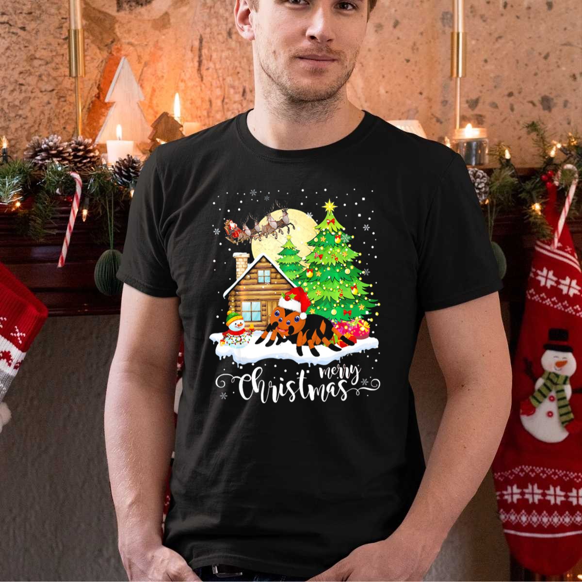 Celebrate the holiday season with a twist of humor in our Funny Merry Christmas Tarantula Cabin Snowman Scene T-Shirt! Perfect for those who love unique and quirky designs, this shirt is ideal for casual outings, themed events, or just spreading holiday cheer among friends and family. Made for all spider enthusiasts and fun-loving individuals, this fan-made design is printed in the USA for quality you can trust.