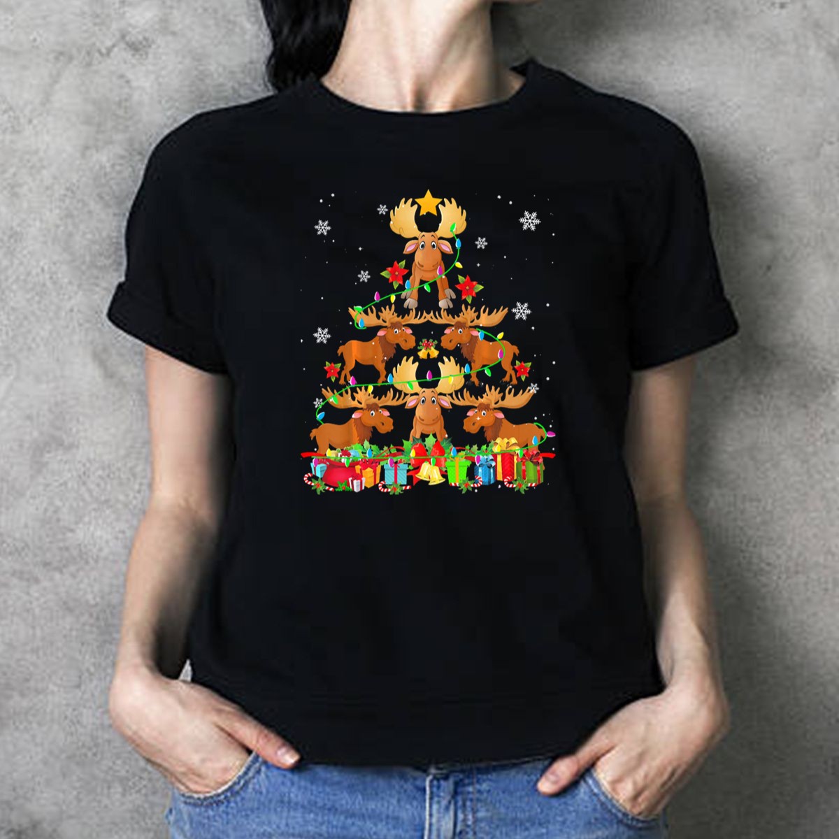 Celebrate the holiday season with a touch of humor in our Funny Moose Deer Christmas Tree With Presents And Snowflakes T-Shirt! Perfect for everyone who loves to embrace the festive spirit, this shirt is an ideal choice for casual gatherings, themed events, or simply spreading cheer during daily wear. Crafted with a unique fan-made design, this shirt is not just a piece of clothing; it’s a festive statement that showcases your fun personality. Printed in the USA, it combines comfort and style for all-season wear.