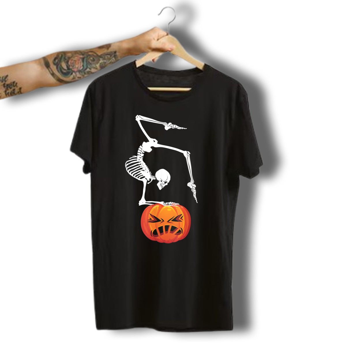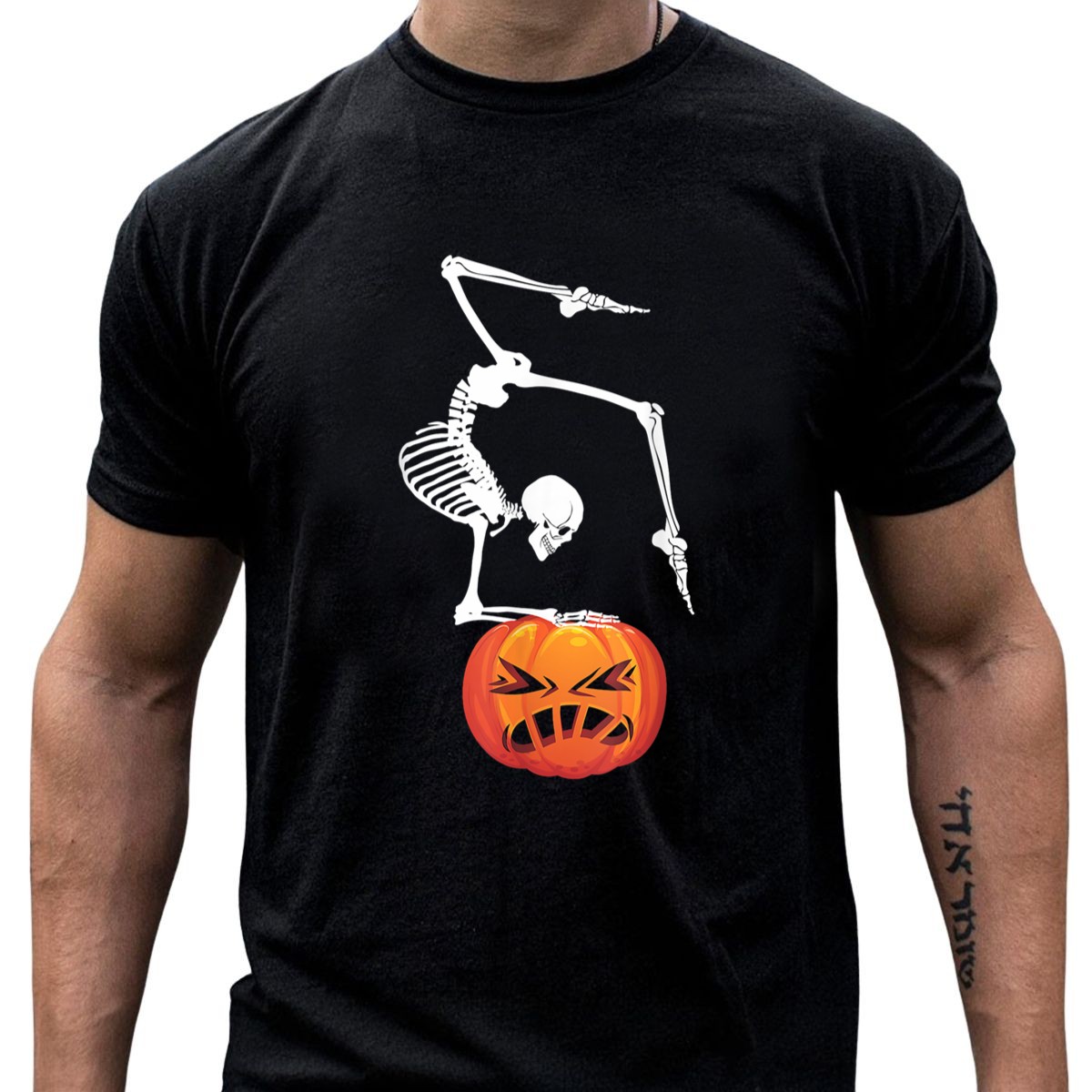 Embrace the spooky spirit of Halloween with our Funny Namaste Skeleton Yoga Pose T-Shirt! Perfect for yoga enthusiasts and Halloween lovers alike, this playful graphic tee features a whimsical skeleton in a yoga pose, elegantly balanced atop a pumpkin. Ideal for casual outings, themed events, or simply lounging at home, this shirt brings a unique twist to your everyday wardrobe. Made with care in the USA, it’s a fan-made design that showcases your fun personality while keeping you comfortable and stylish.