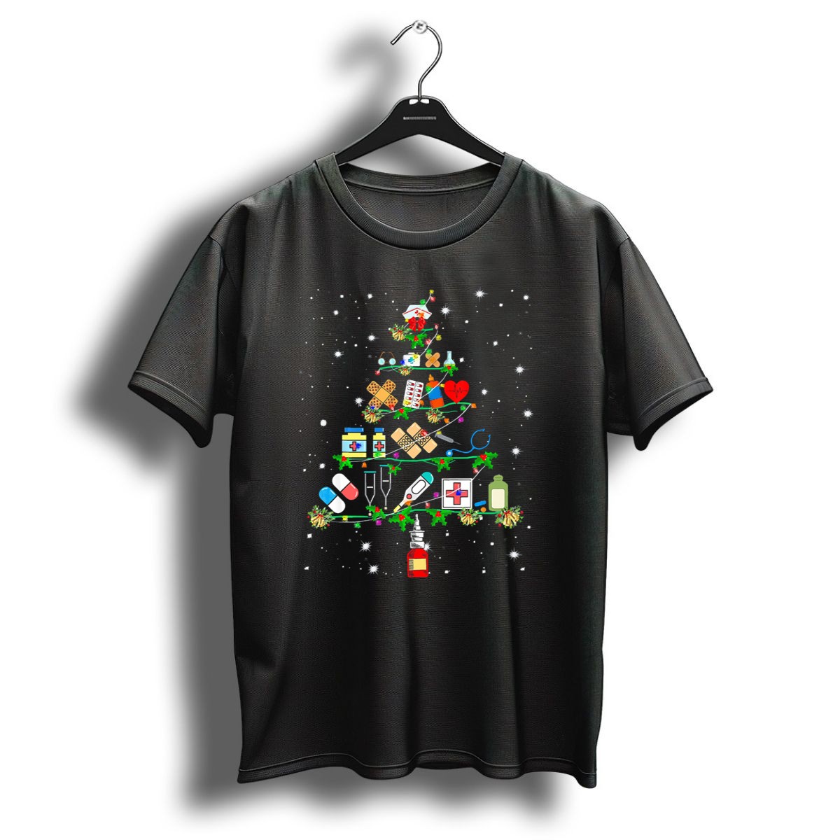 Celebrate the holiday season with a touch of humor in our Funny Nurse Christmas Tree Medical Icons T-Shirt! Designed for nurses and healthcare professionals, this fun tee is perfect for casual wear, themed events, or daily outings. Featuring a playful graphic that combines festive cheer with medical flair, this shirt is a great way to showcase your passion for nursing while spreading holiday joy. Made in the USA, this fan-made design is sure to be a hit among your fellow healthcare heroes!