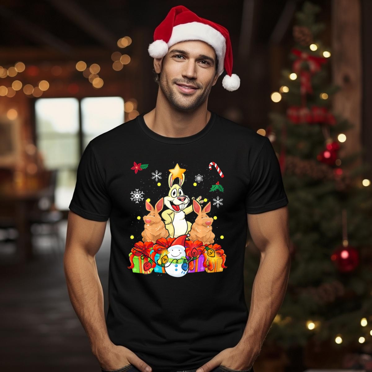 Celebrate the holiday season with our Funny Rabbit Christmas Tree T-shirt, perfect for those who love a whimsical twist on festive attire! This delightful design features a charming rabbit surrounded by a beautifully decorated Christmas tree, gifts, and a cheerful snowman, making it an ideal choice for casual gatherings, themed events, or daily wear during the holidays. Crafted for comfort and style, this shirt is a fun way to express your holiday spirit while staying cozy and fashionable.