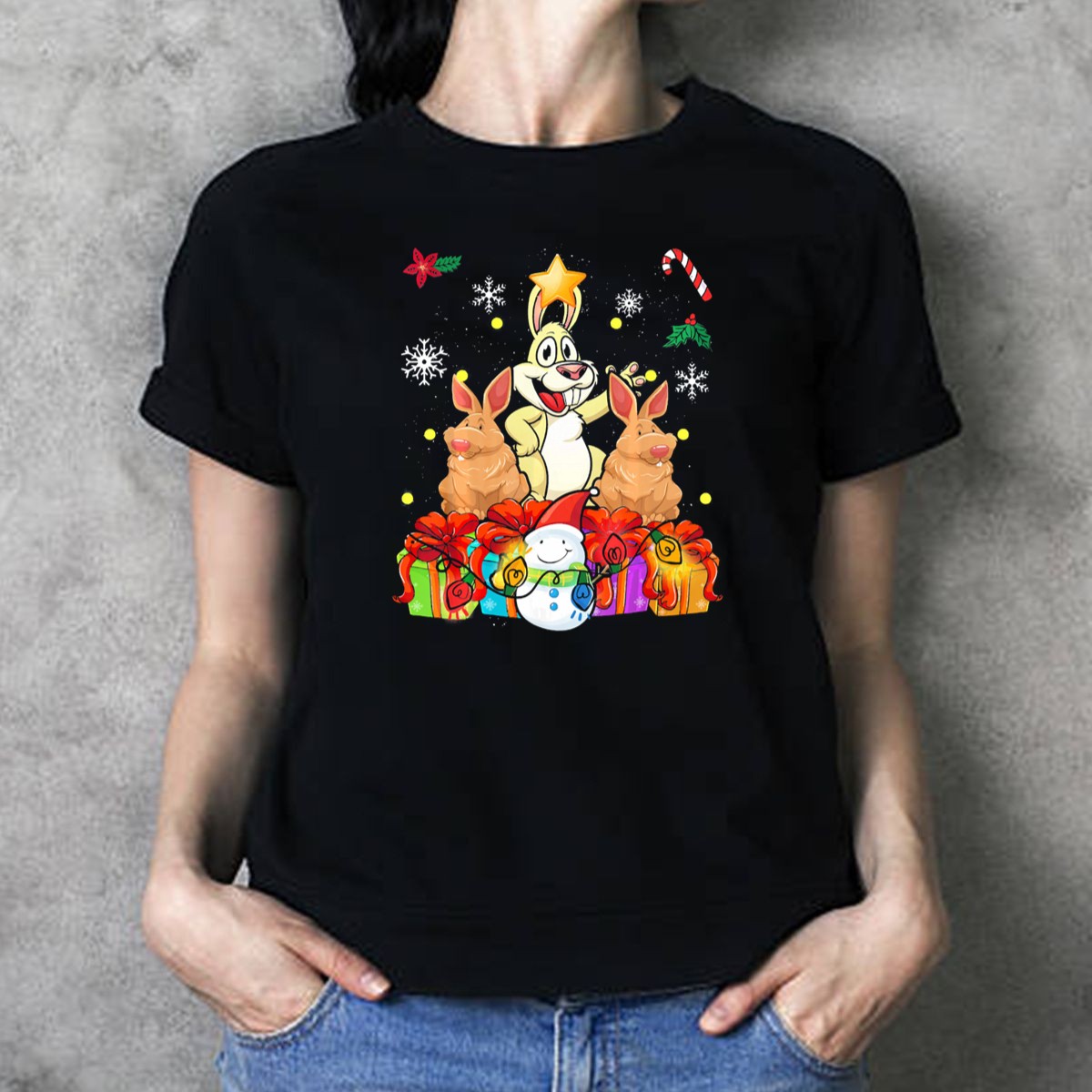 Be the first to review “Funny Rabbit Christmas Tree With Gifts And Snowman T-Shirt”