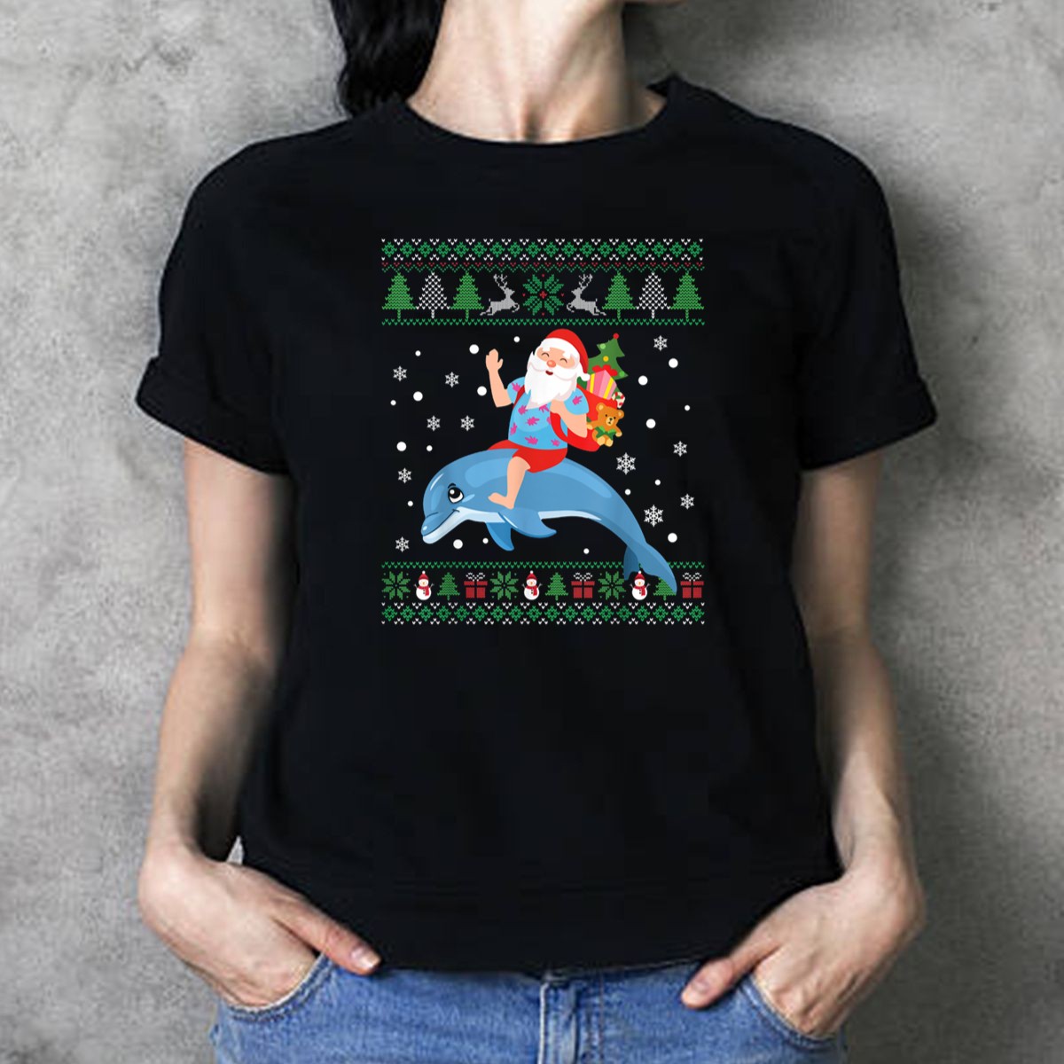 Get ready to spread some holiday cheer with our Funny Santa Riding Dolphin T-Shirt! Perfect for anyone who loves to celebrate Christmas with a twist, this shirt combines festive fun with a splash of oceanic delight. Ideal for casual wear, themed events, or simply adding a unique touch to your daily outfits, this shirt is sure to turn heads and spark laughter wherever you go. With its fan-made design printed in the USA, you can wear it proudly while showcasing your love for the quirky side of the holidays!