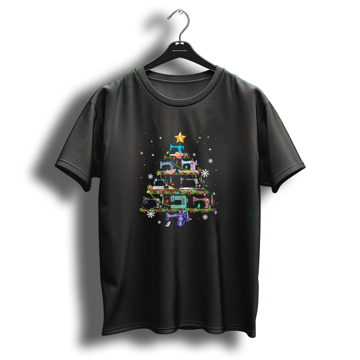 Funny Sewing Christmas Tree With Quilting Machines And Festive Decorations For Quilting Lovers T-Shirt
