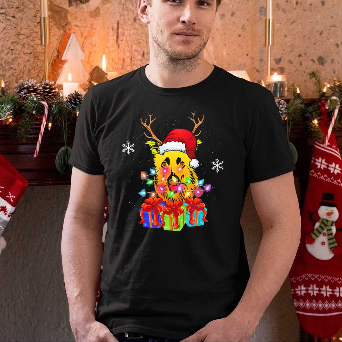 Celebrate the holiday season with our Funny Sheltie Dog Christmas T-Shirt, perfect for dog lovers and festive gatherings! This charming design features an adorable Sheltie wearing antlers and a Santa hat, surrounded by presents and twinkling lights, making it a delightful addition to your casual wear. Ideal for themed events, daily outings, or simply spreading cheer, this shirt is a must-have for anyone looking to showcase their love for Shelties and the holiday spirit. Made with care in the USA, it’s not just a shirt; it’s a celebration of love and joy!