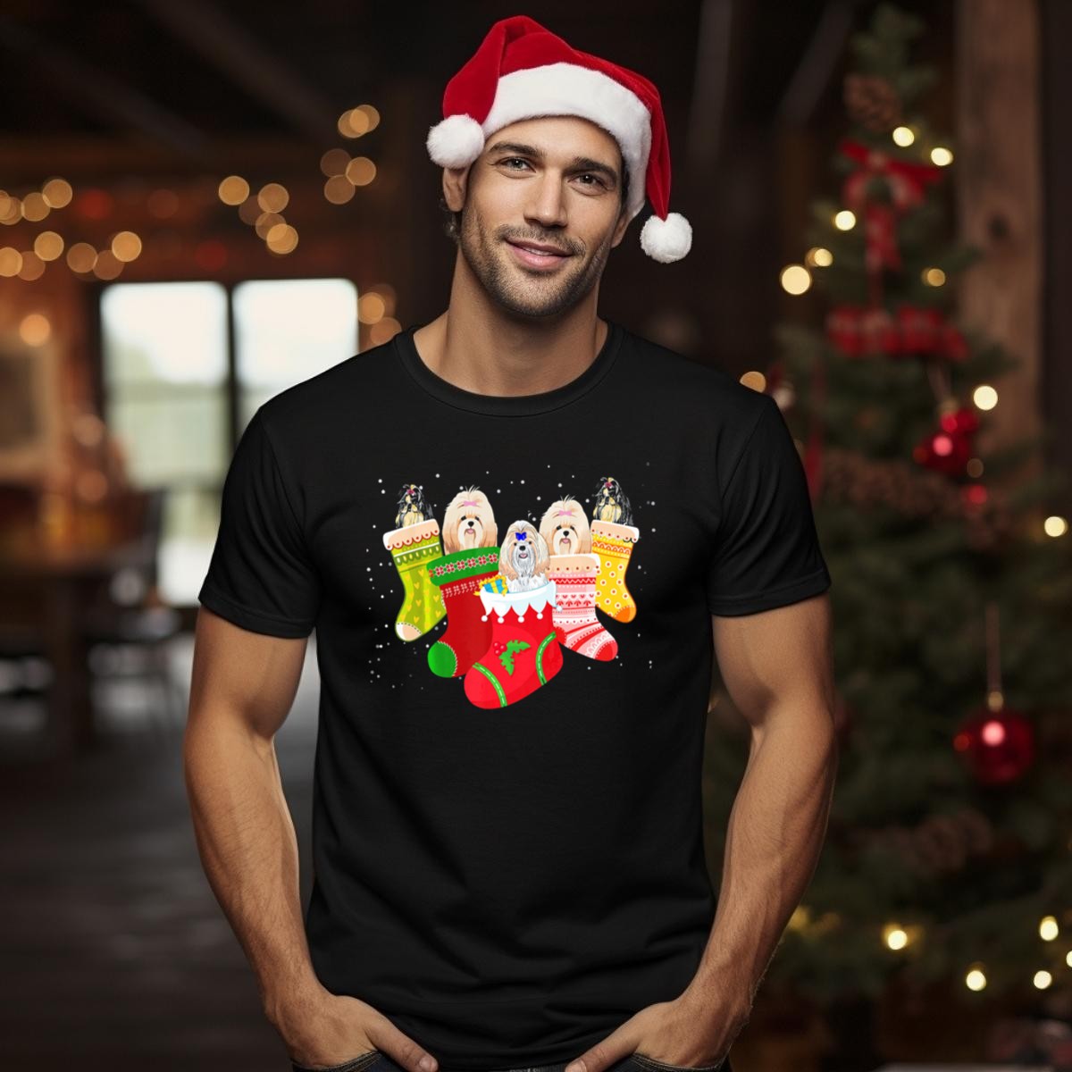 Celebrate the festive spirit with our Funny Shih Tzu Christmas Stocking T-Shirt, perfect for dog lovers and holiday enthusiasts alike! This playful tee features an adorable graphic that captures the joy of the season, making it an ideal choice for casual wear, themed events, or daily outings. Crafted for comfort and style, this shirt is a must-have for anyone looking to spread cheer while showcasing their love for their furry friends.